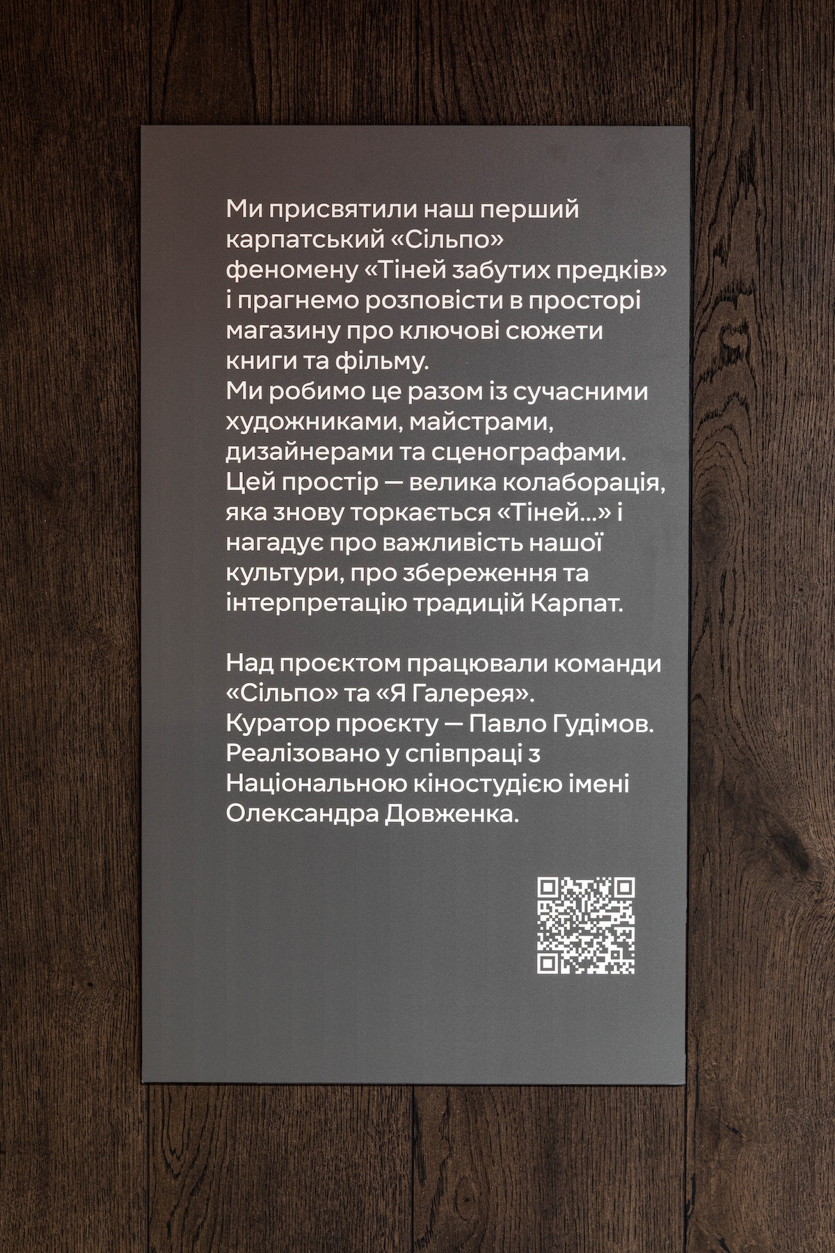 Як зазначає Павло Гудімов: «Ми переосмислюємо один із найпотужніших українських творів, що інтерпретує культуру і традиції Карпат — «Тіні забутих предків». Щоб якісно та актуально розповісти про феномен, ми звернулися до митців сьогодення. Відкритий простір супермаркету дав шанс осучаснити всесвіт «Тіней», показати його живим, актуальним не лише для карпатців, а й для туристів”.