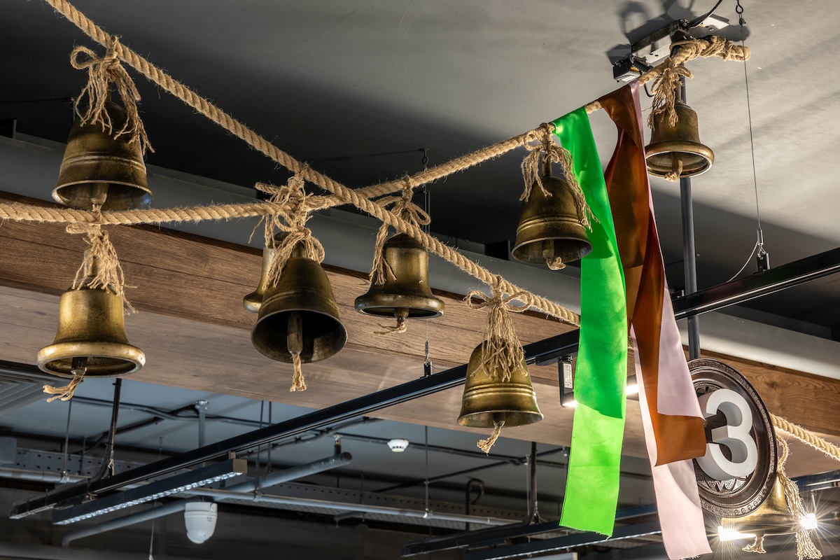 Щоб глибше дослідити тему, команда вирушила в експедиції до Косова, Коломиї та Криворівні, де знайомилась із майстрами, які зберігають давні ремесла, і надихалась місцями, де знімали “Тіні”. Цей підхід дозволив створити десять тематичних зон, які проводять відвідувачів крізь ключові сцени фільму. У кожній зоні оживають переосмислені образи зі стрічки, як-от ярмо зі сцени вінчанння — символ шлюбу за домовленістю, чи вогняні коні — алюзія на культову сцену смертельного поранення Петра Палійчука. Біля Гастрономії здіймаються трембіти — нагадування про музичний внесок народних музик і композитора Мирослава Скорика. Поруч — справжні артефакти оспіваної гуцульської культури: автентичний посуд, свічники-трійці, предмети побуту й меблі. Їх команда Сільпо знайшла під час експедицій до Коломиї та Косова. А над усім — знакові фрази з фільму, що світяться червоним неоном, мов багряні титри стрічки.