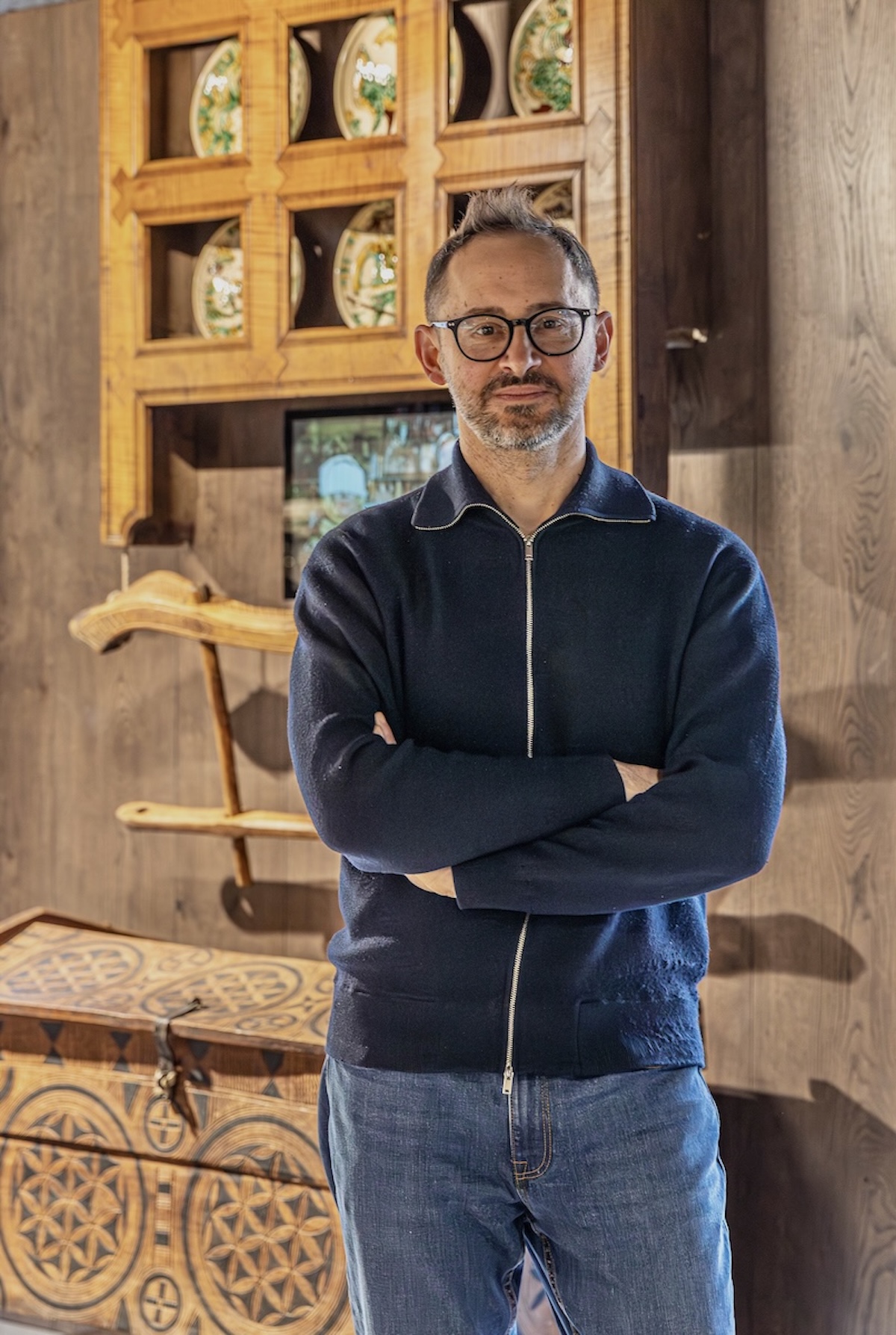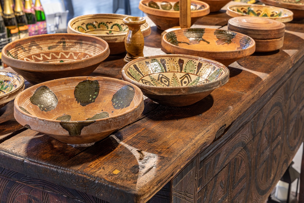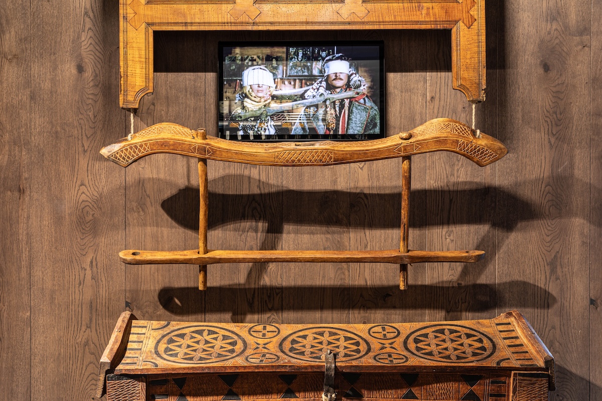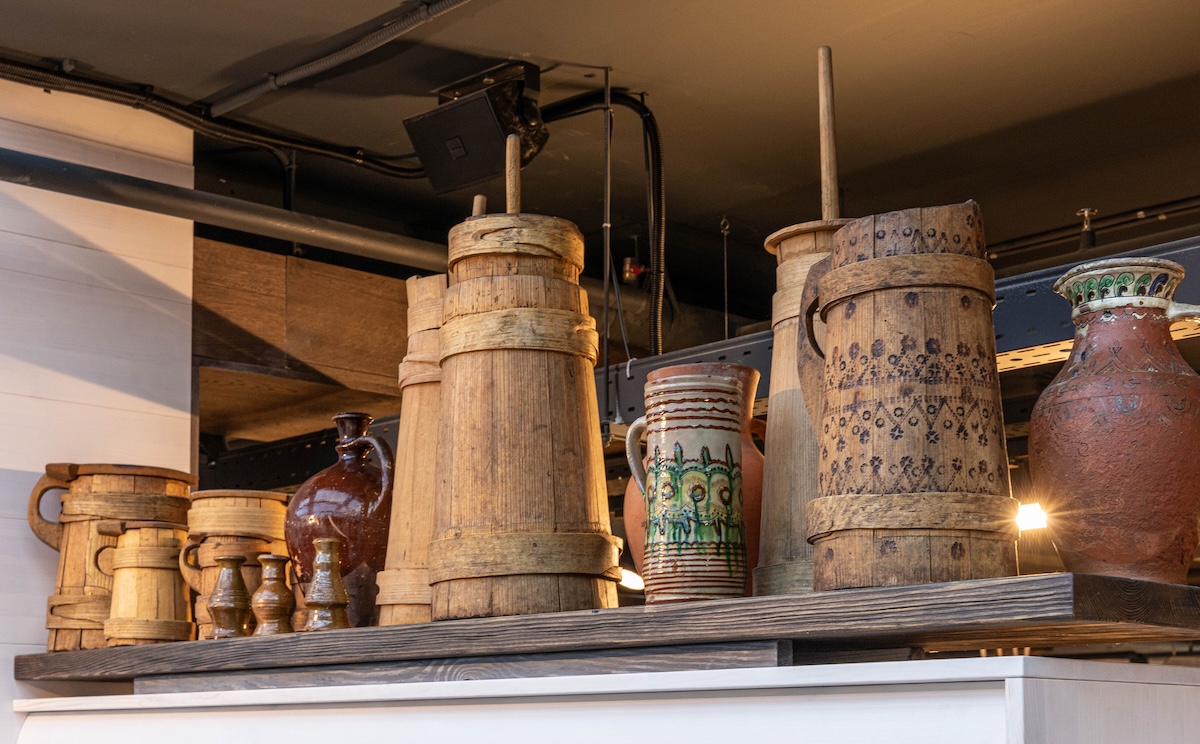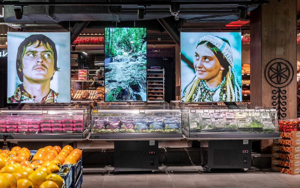 Серед експонатів є також артоб’єкти, створені сучасними митцями спеціально для карпатського супермаркету. При вході відвідувачів зустрічає мозаїка за мотивами оригінального постера «Тіней забутих предків» Георгія Якутовича. Її створили студенти Академії Бойчука за кураторства Андрія Дудченка. У зоні «Святвечора» стіл прикрашають керамічні сирні коники від Сергія Дудки — майстра косівської кераміки, який тонко поєднує давні гуцульські мотиви й сучасну пластику. У «Корчмі» покупці побачать портрет Франца Йосифа від Володимира Костирка — одного з найвпізнаваніших львівських художників. Схожі портрети висіли майже в кожній гуцульській хаті. У прикасовій зоні — ілюстровані портрети всіх, хто творив феномен «Тіней», виконані художником Олегом Грищенком та клубом ілюстраторів «Pictoric».