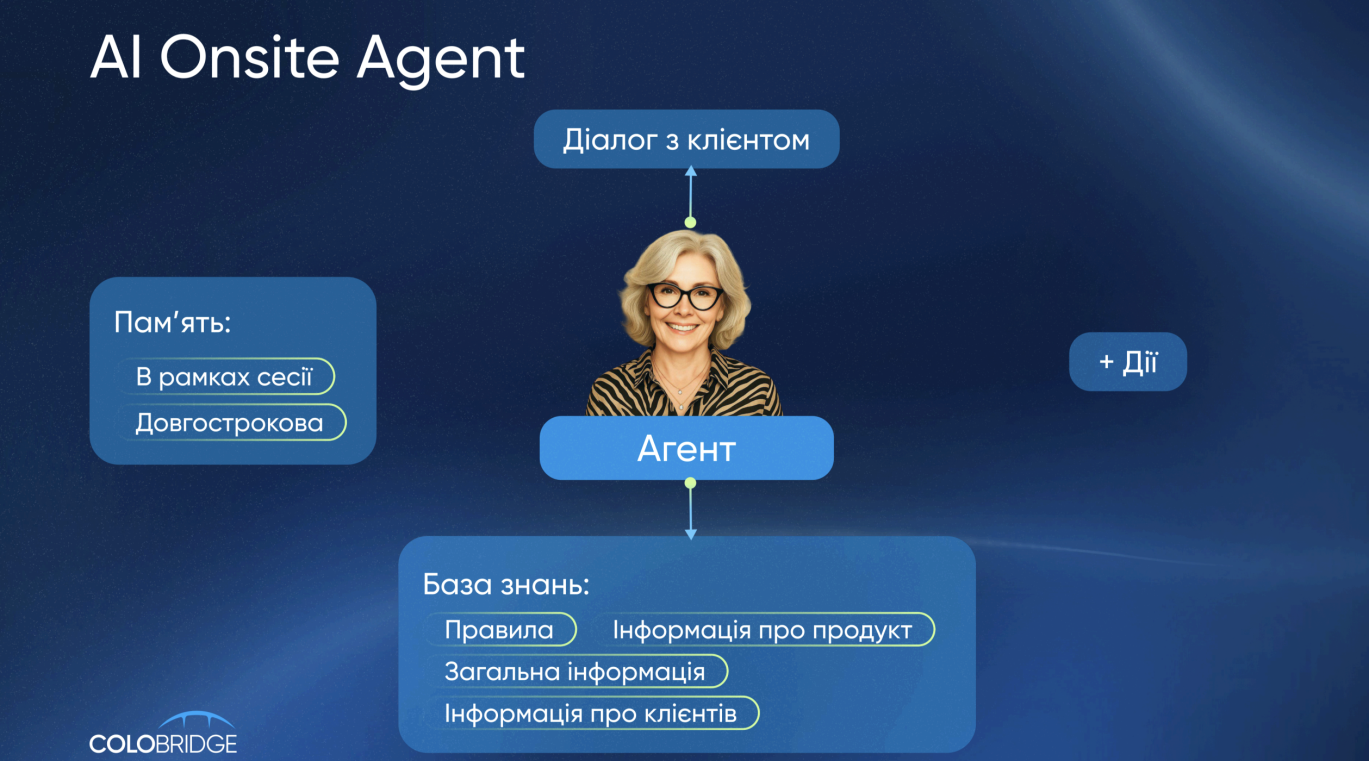 - Оперує знаннями: Має глибоку базу знань про продукти та профілі клієнтів.