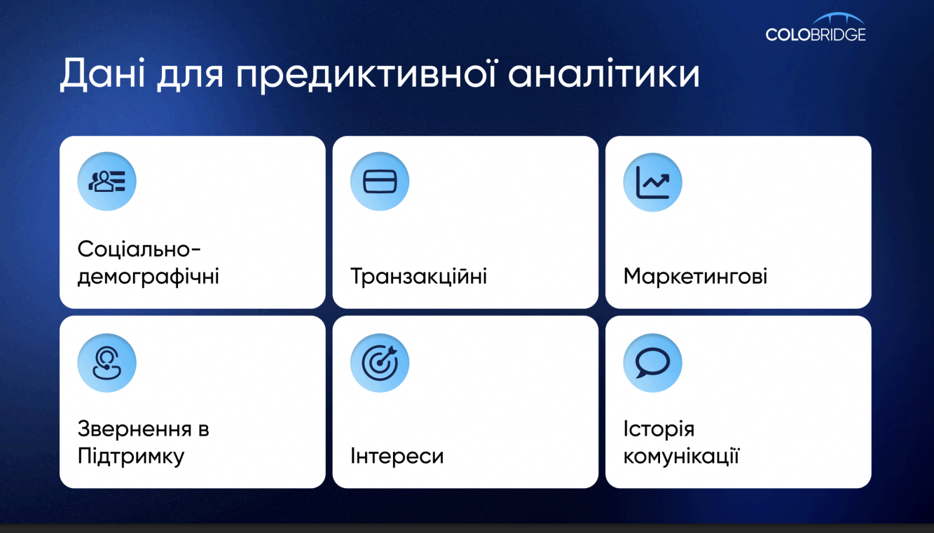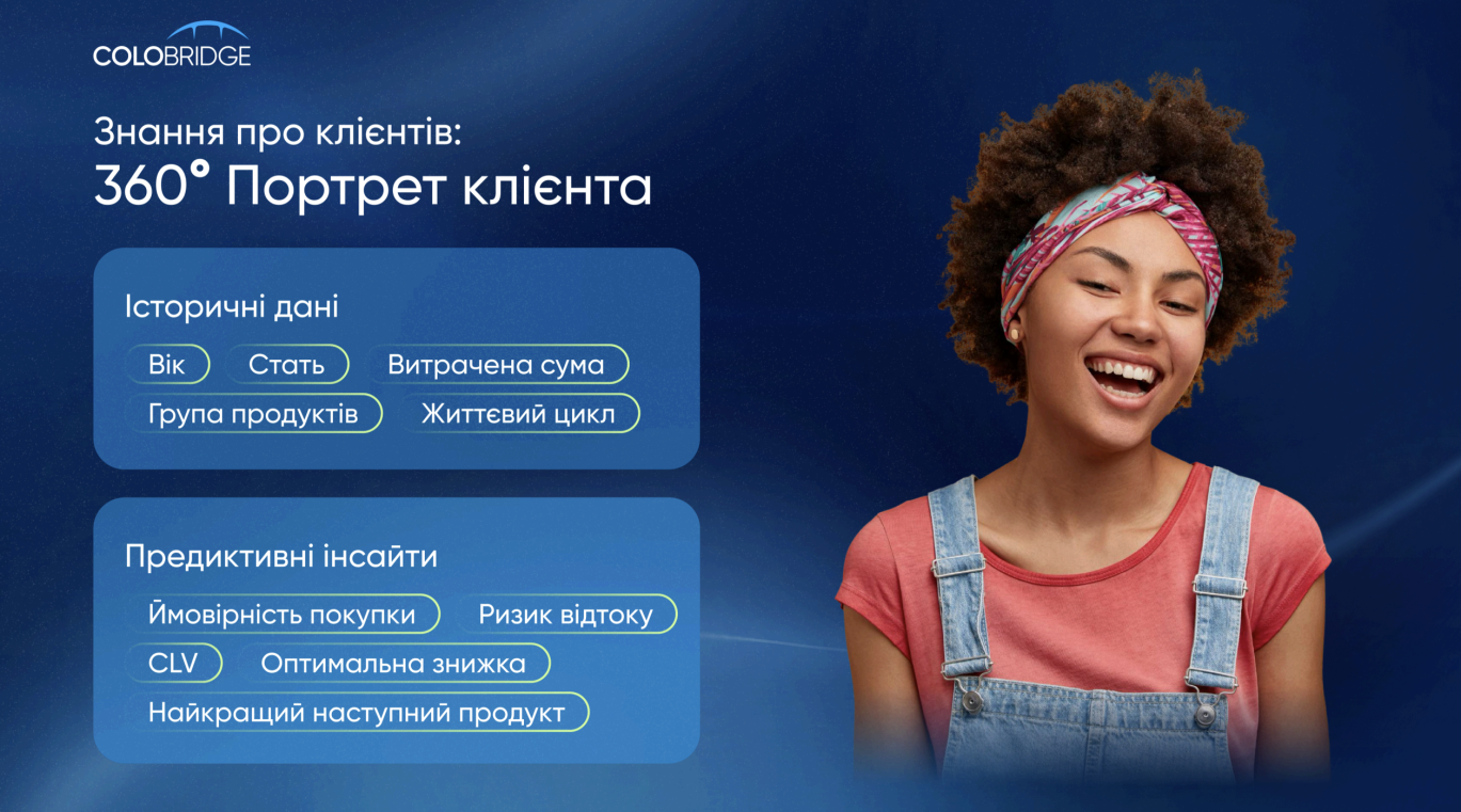 - Предиктивні інсайти: Інформація, отримана за допомогою предиктивної аналітики (ML-моделі), яка прогнозує поведінку клієнта в майбутньому.