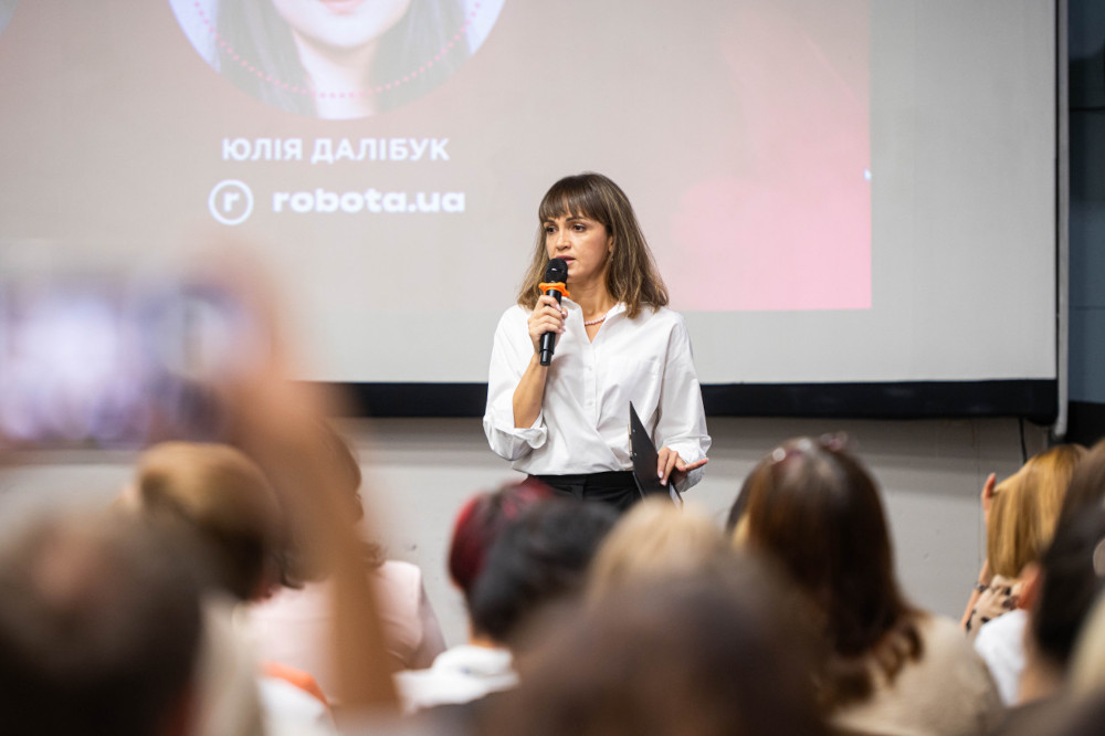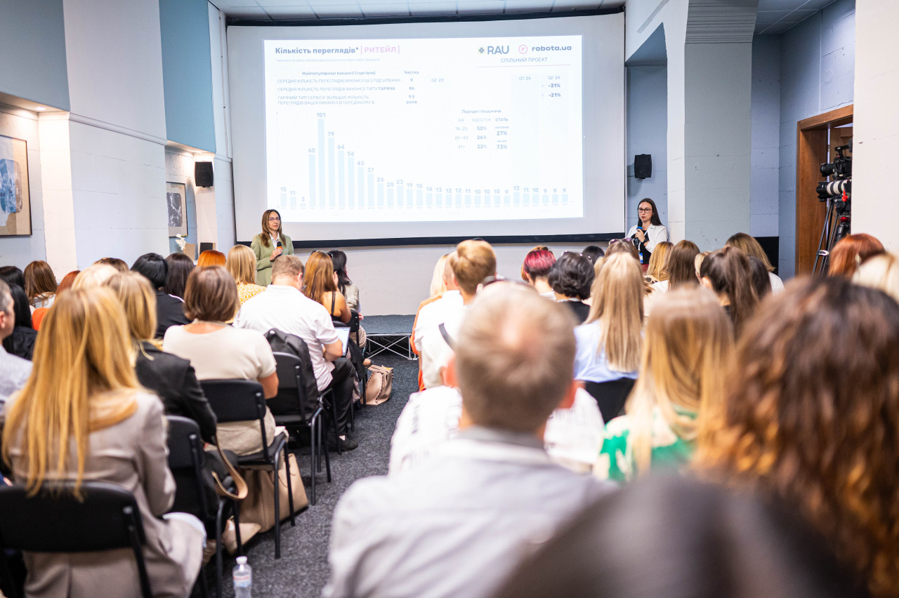 Далі з аналітикою ринку праці у ритейлі виступили Яна Єрмакова, керівниця відділу аналітики Retail Association of Ukraine та Юлія Далібук, маркетинг-директорка robota.ua.