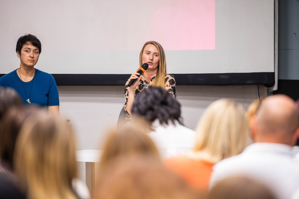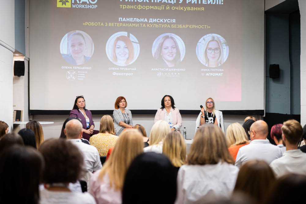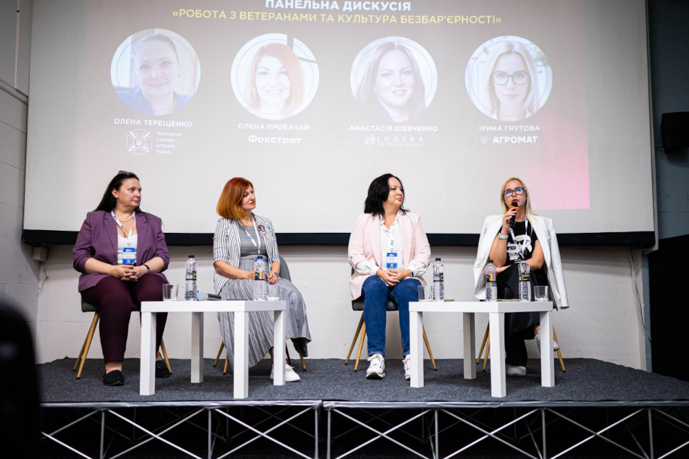Після workshop продовжився панельною дискусією на тему: «Робота з ветеранами та культура безбар’єрности». В обговоренні взяли участь, Олена Терещенко, представник відділу розвитку ветеранських підприємницьких ініціатив Департаменту забезпечення переходу від військової служби до цивільного життя Міністерства у справах ветеранів України, Олена Пробачай, керівниця підбору і адаптації персоналу Фокстрот, Анастасія Шевченко, генеральна менеджерка Lugera Ukraine, та модератор дискусії Ірина Гнутова, HRD Агромат.