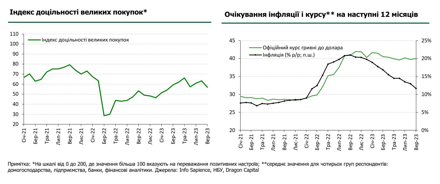 В першій половині року зростала схильність населення робити великі покупки на фоні стабілізації курсових очікувань та зниження очікувань щодо майбутньої інфляції. Можна сказати, люди відчули більшу впевненість у завтрашньому дні й перестали аж занадто економити. Збільшення споживання підтримало економіку через зростання роздрібного товарообороту та попит на споживчі товари внутрішнього виробництва, хоча й сприяло також збільшенню імпорту.