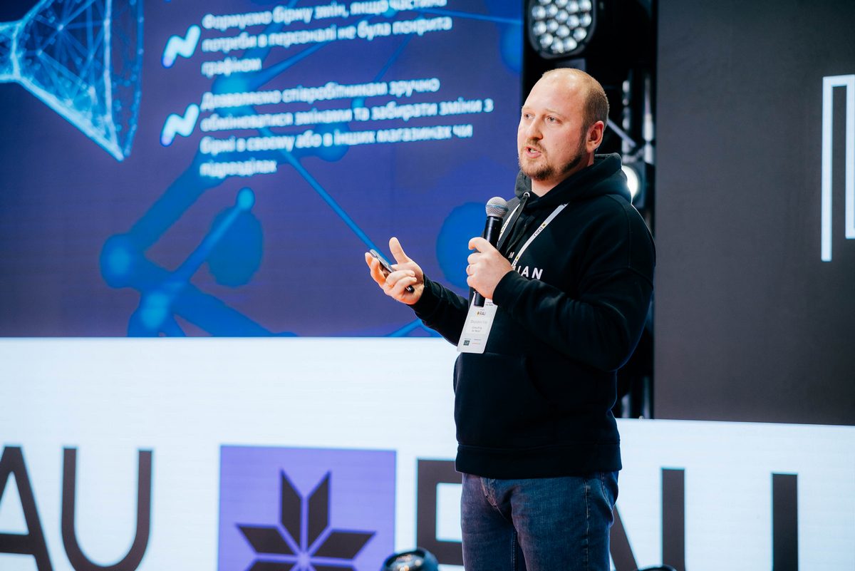Керівник відділу автоматизації бізнес-процесів Consulting for Retail Ігор Федорюк демонструє рішення Tweekly від Consulting for Retail – автоматизацію планування робочих графіків відповідно до потреб мережі