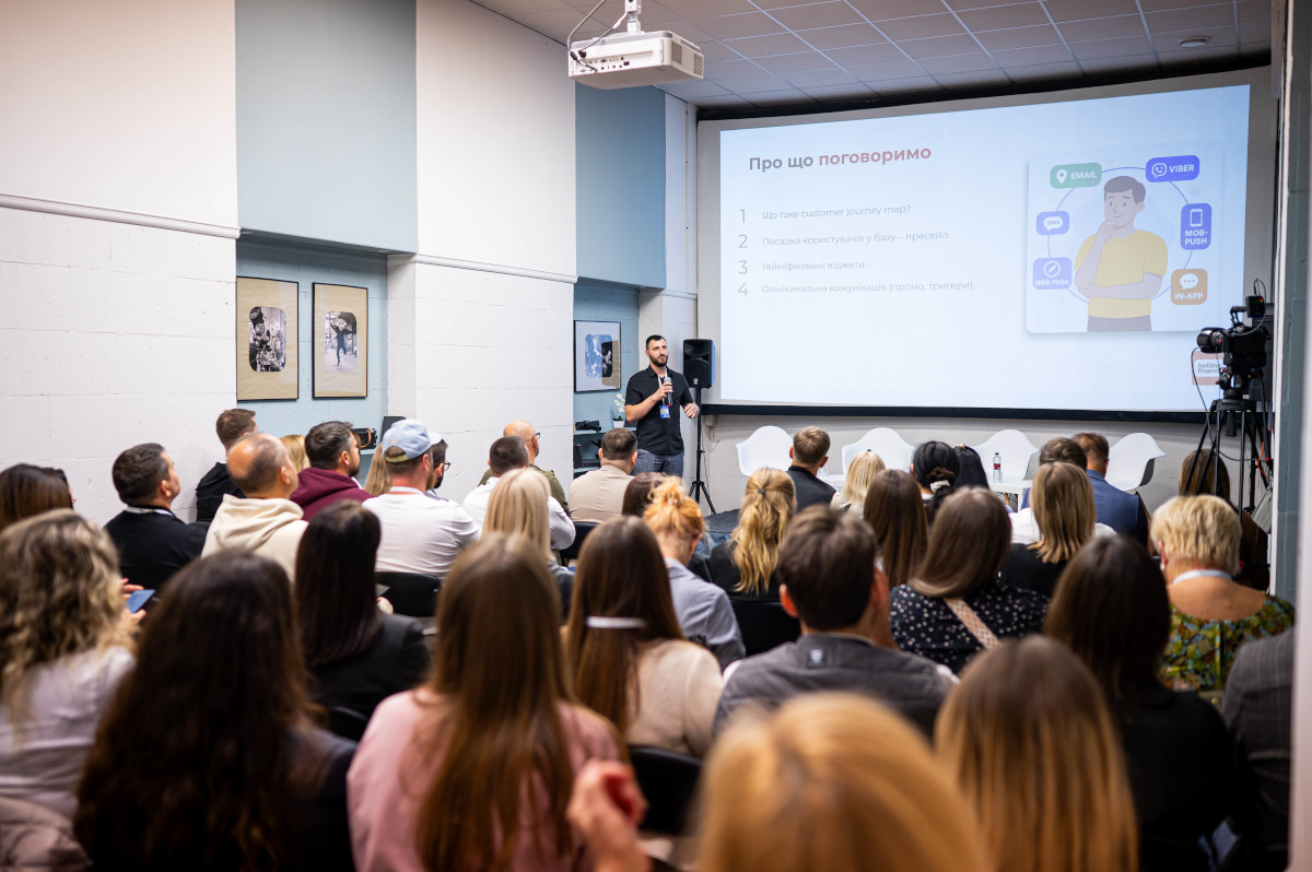 Першим виступив Олег Лєсов, CDP eSputnik з презентацією «Shopping Season is Coming. Як змінюються показники бізнесу під час сезонних розпродажів». На основі даних за останні п’ять років спікер показав, як Чорна п’ятниця впливає на продажі, середній чек та структуру нових і постійних клієнтів, а також які канали дають найвищу конверсію, як нові канали вриваються у тренди та що робити для подальшого зростання.