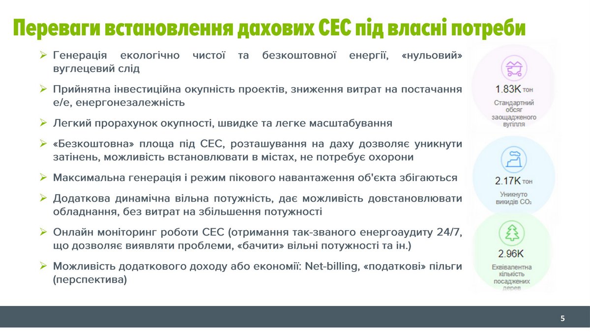 Втім, як показує практика, за поточного рівня цін на е/е, номінальна окупність СЕС складає п’ять років.