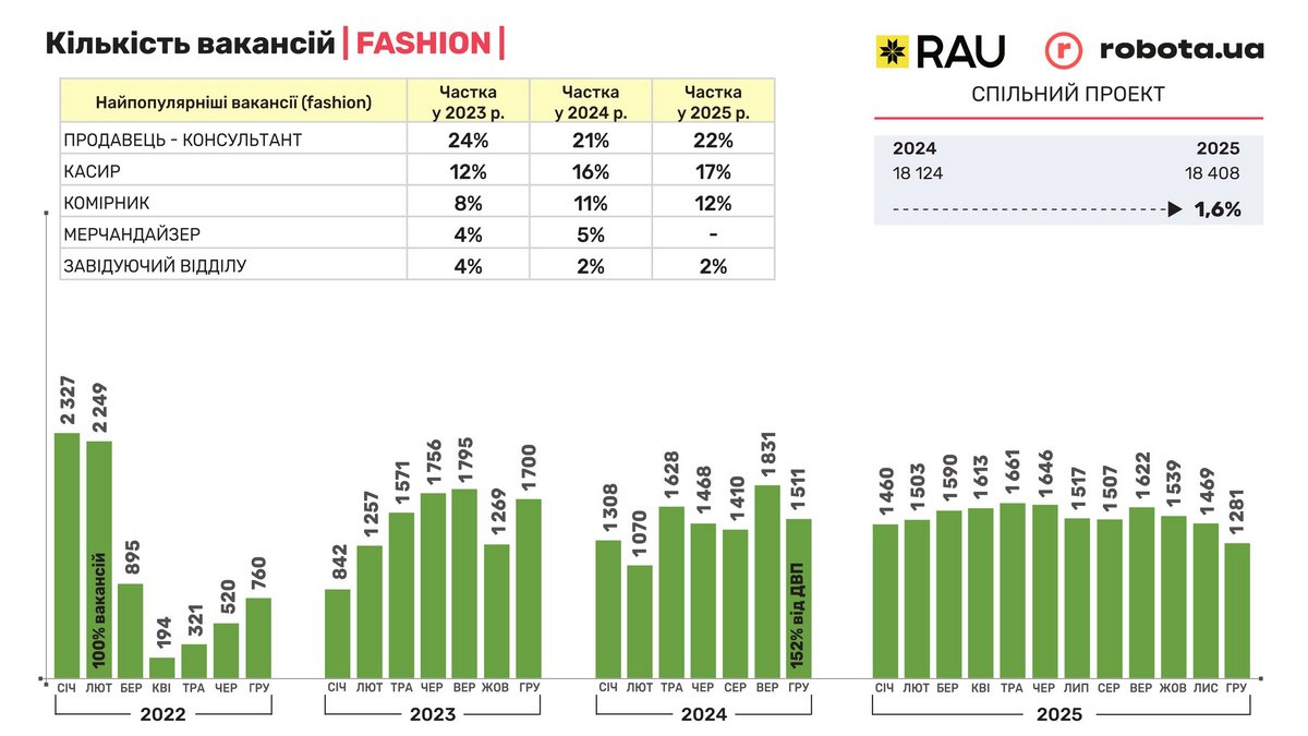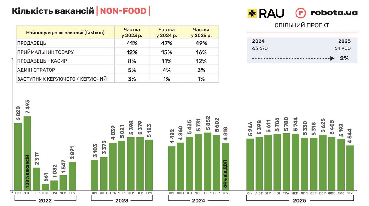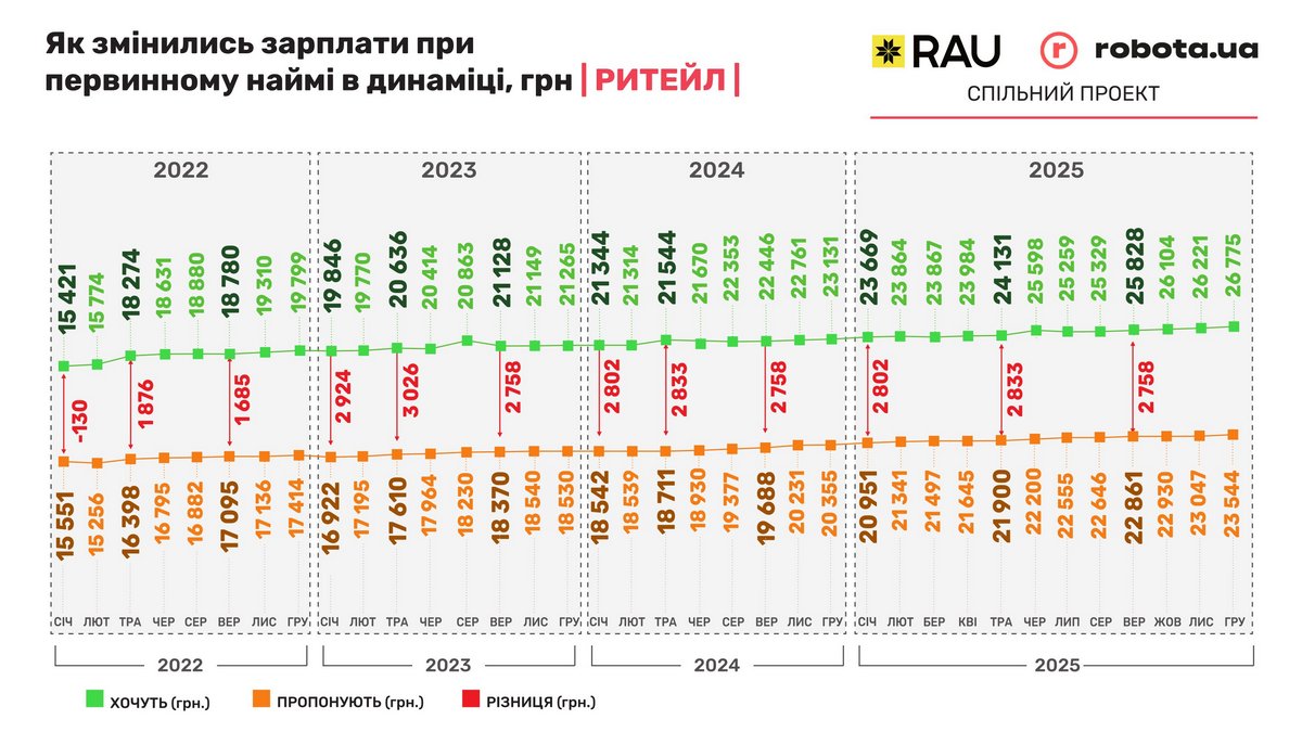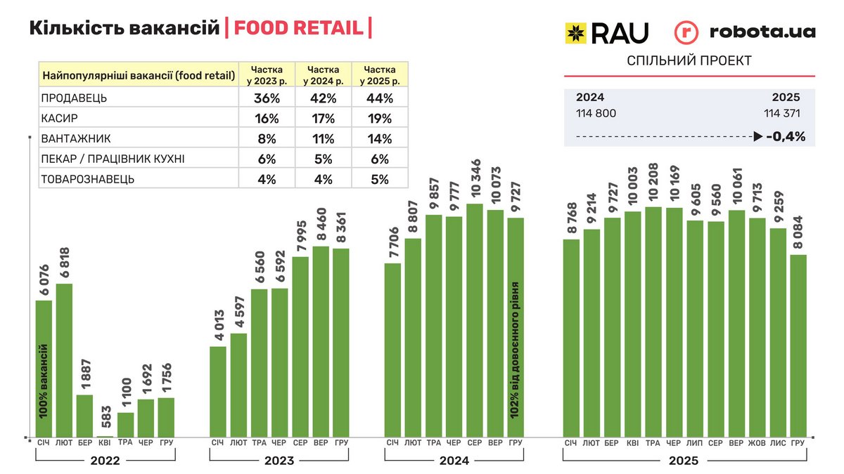Спільний проєкт RAU і robota.ua: як змінився ринок праці в ритейлі з січня по грудень 2025 року