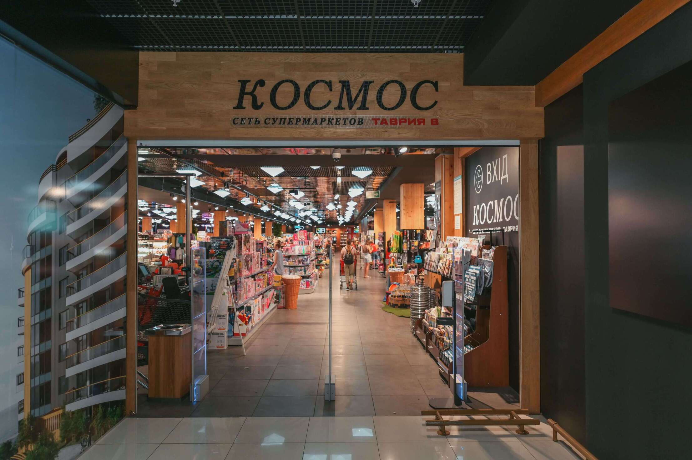 У ТЦ Сади Перемоги, де розміщуються бутики дорогих світових марок, є картинна галерея та концертний зал, звичайний магазин Таврія В не підходив. Тому виникла ідея відкрити преміальний супермаркет Космос аби розділити магазини середнього сегменту і преміальний асортимент. Наразі працює три магазини Космос – два в Одесі і один в столиці.