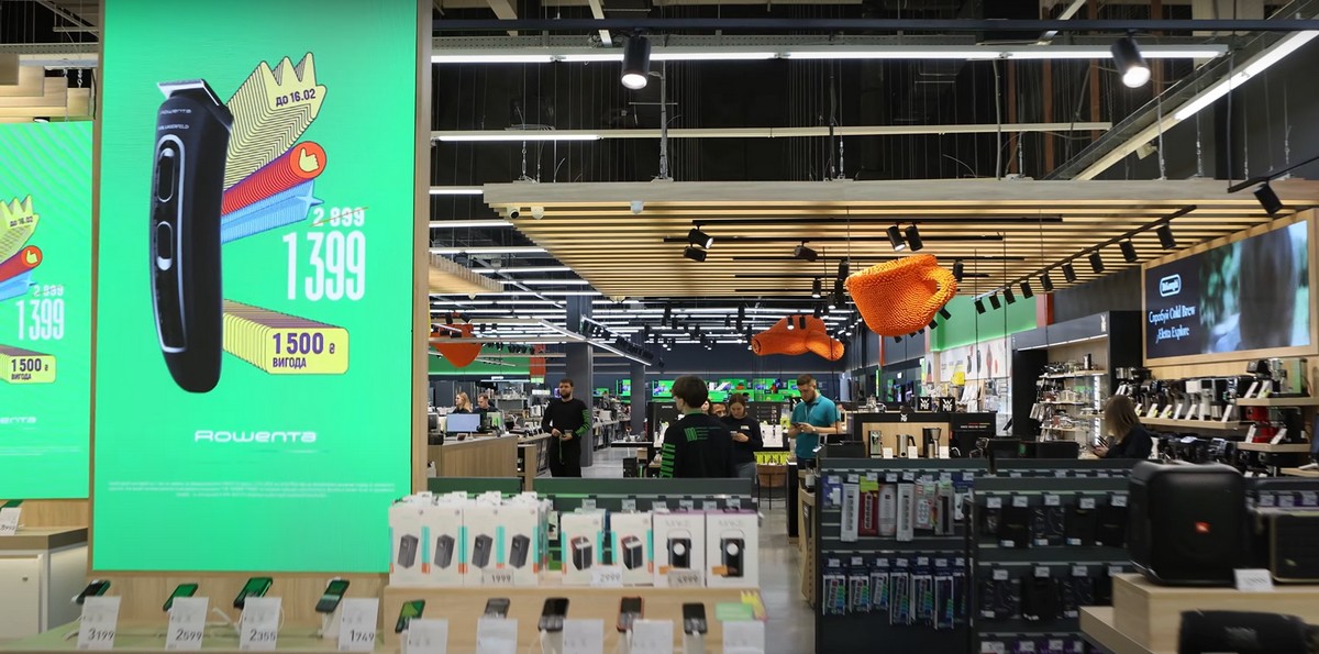 – Саме так, на комфорт і зручність. Ми зменшили площу в два рази – тобто, середня площа наших супермаркетів зараз близько 1000 кв. м. Ми змінили освітлення – зробили його теплішим, екологічнішим, в усіх наших магазинах енергозберігаюче освітлення LED. І ключове – ми змінили підхід до обладнання. Як привнести в звичайний супермаркет електроніки домашній затишок? Дуже просто – додати кольори, додати текстури, зробити техніку ближчою для клієнта.