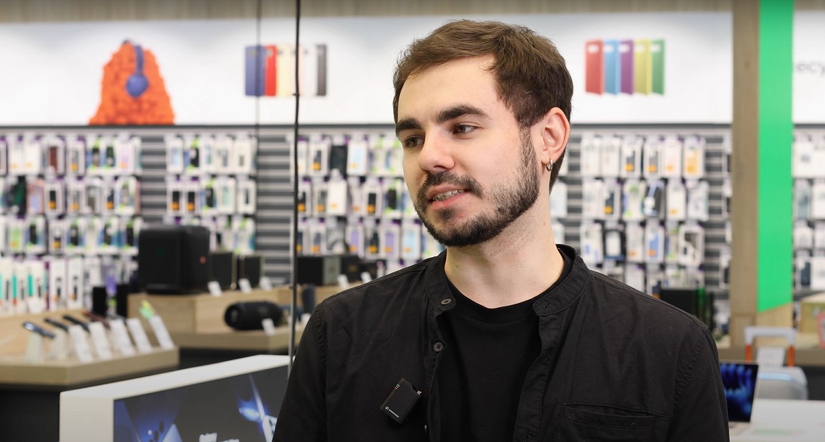 Зараз всю дрібну побутову, велику техніку клієнт може потримати, поюзати – всі гаджети розташовані достатньо низько. Він може скористатись феном для волосся, або взяти смартфон – кожен з товарів можна взяти в руки.