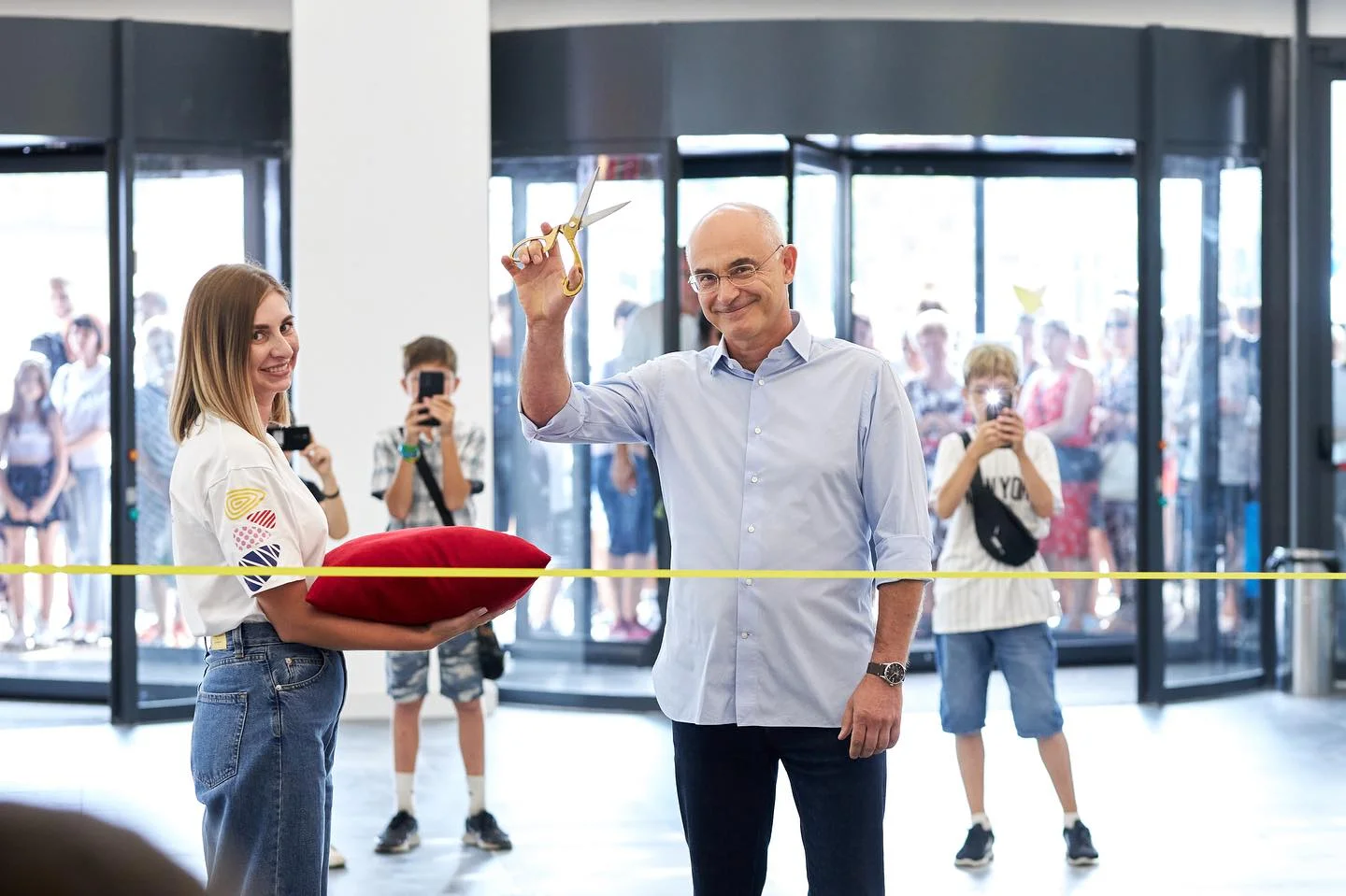 Урочисте відкриття ТРЦ пройшло з розрізанням стрічки. У заході прийняли участь засновник ТРЦ Veles Сергій Пукіш, представник координаційного центру Save Ukraine Now Тарас Герулі, засновниця кінотеатру MovieLand Лідія Шкрібляк та інші.
