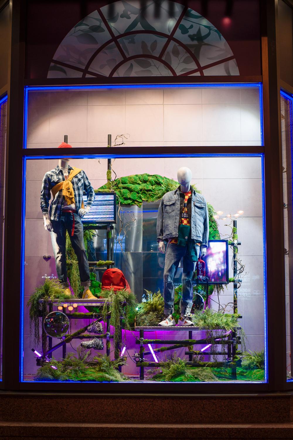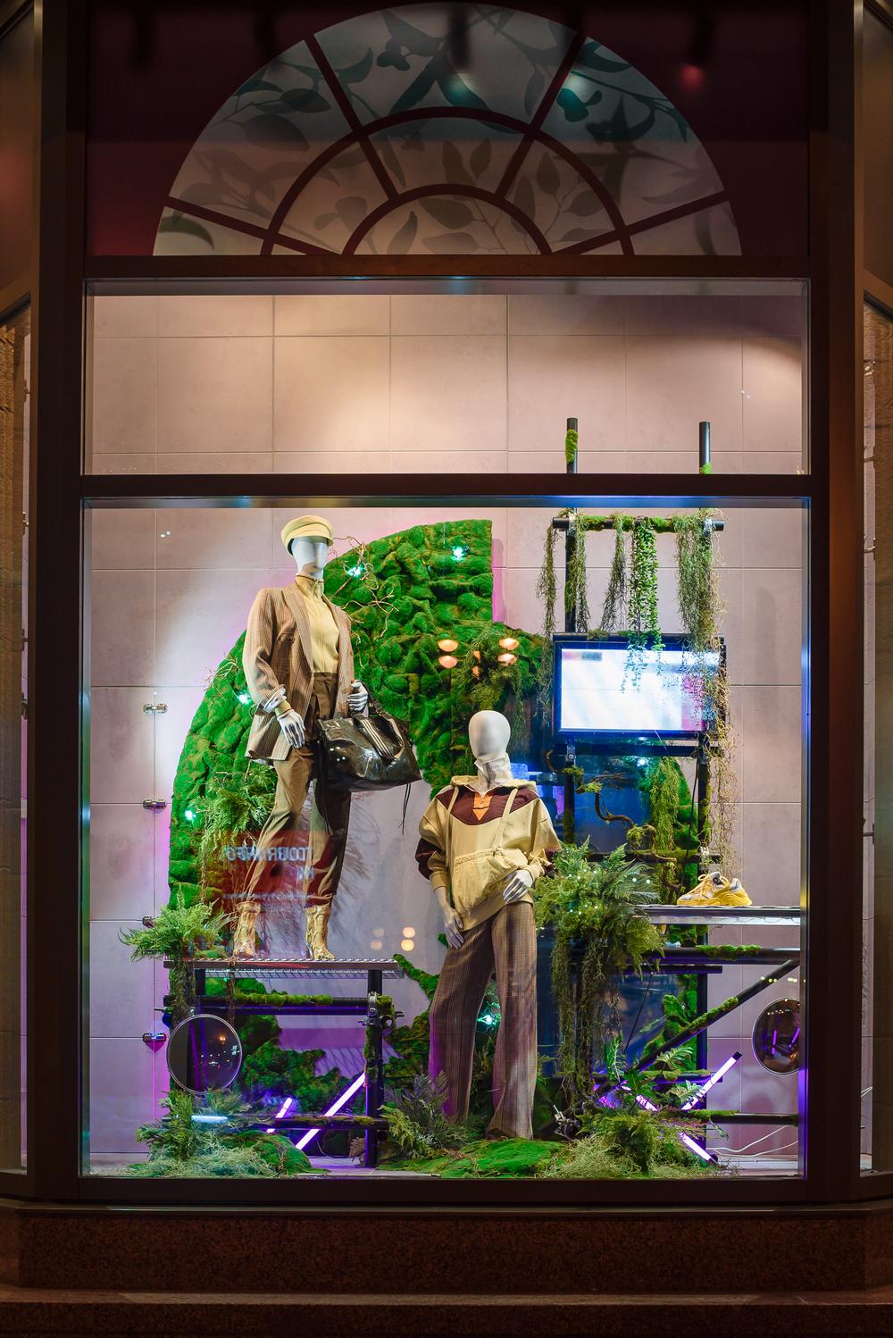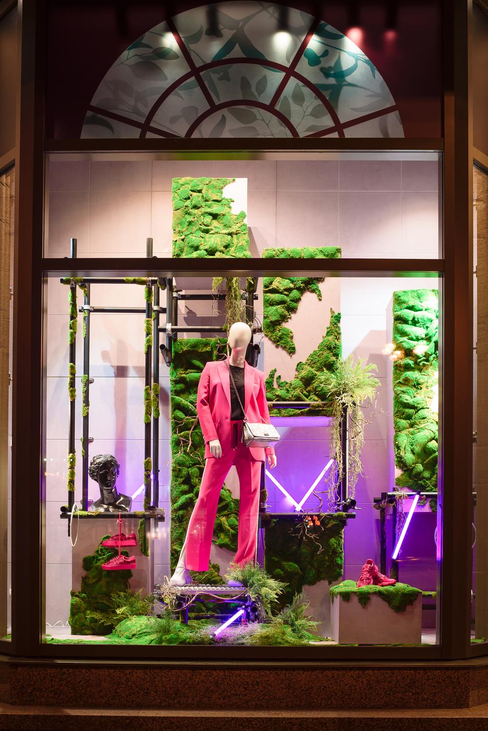 У кожній з вітрин представлена композиція, що включає один або кілька символів: рослини, каміння, риштування й елементи digital. Креативна команда універмагу не випадково вибрала саме таке поєднання різних факторів. Рослини, зелень – це відсилання до весни та нового сезону, що розпочнеться незабаром, і в якому ЦУМ постане перед відвідувачами в новому, переродженному вигляді.