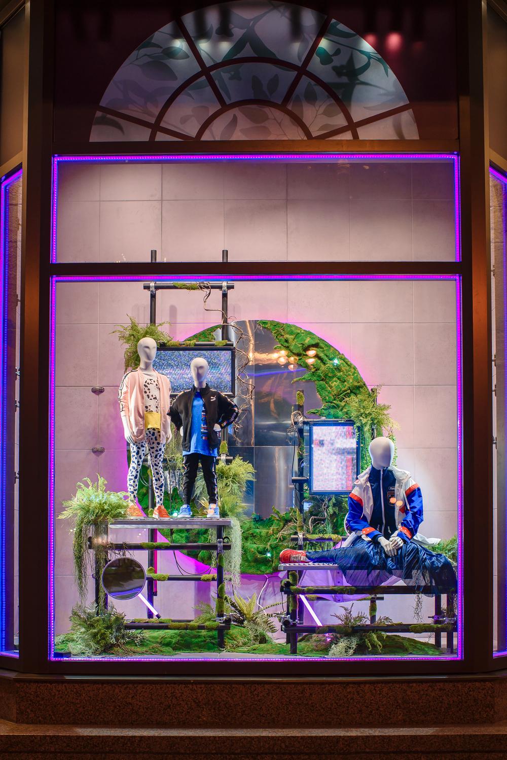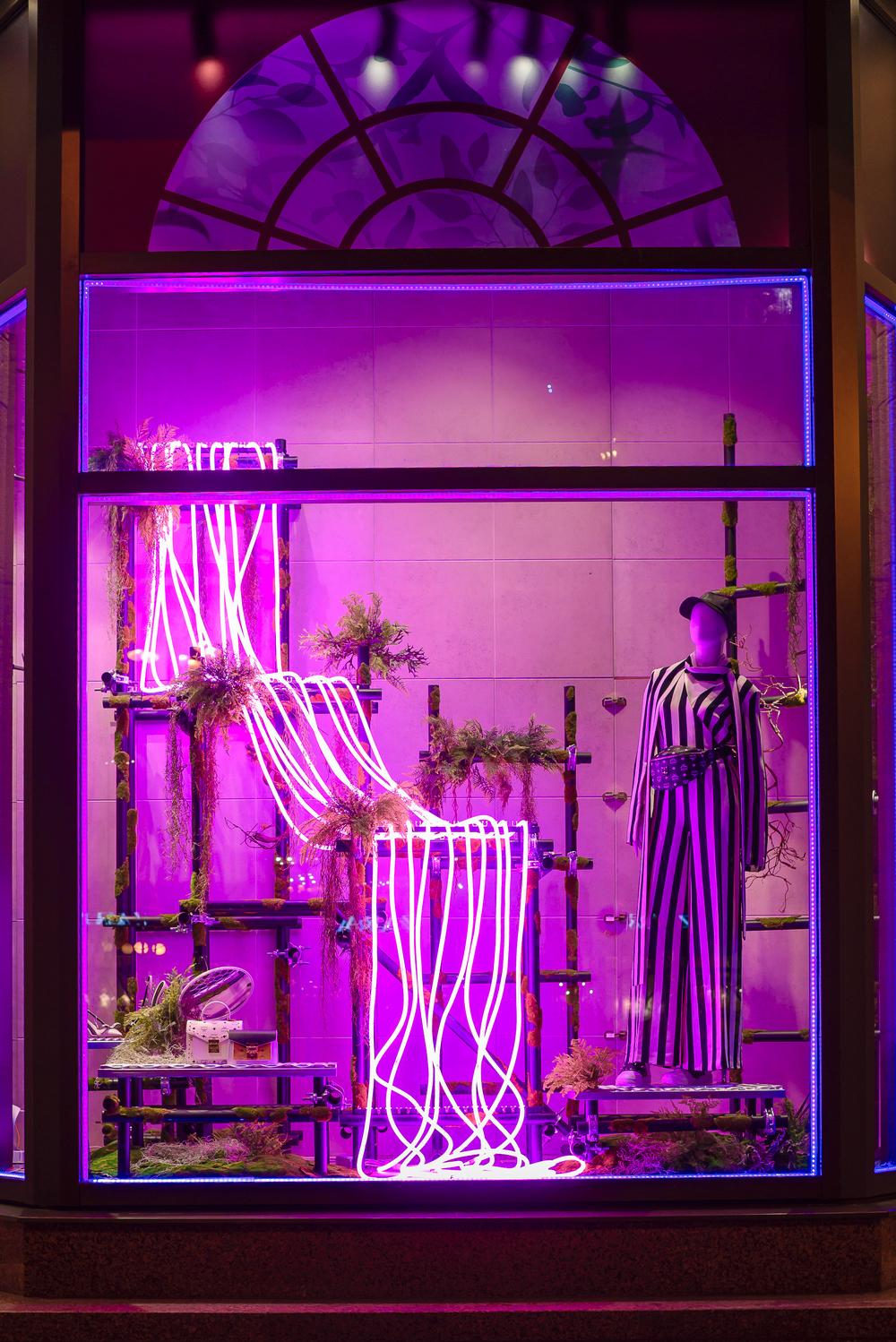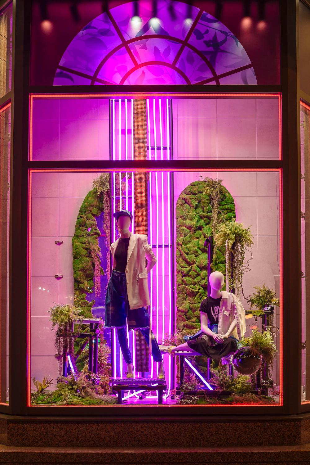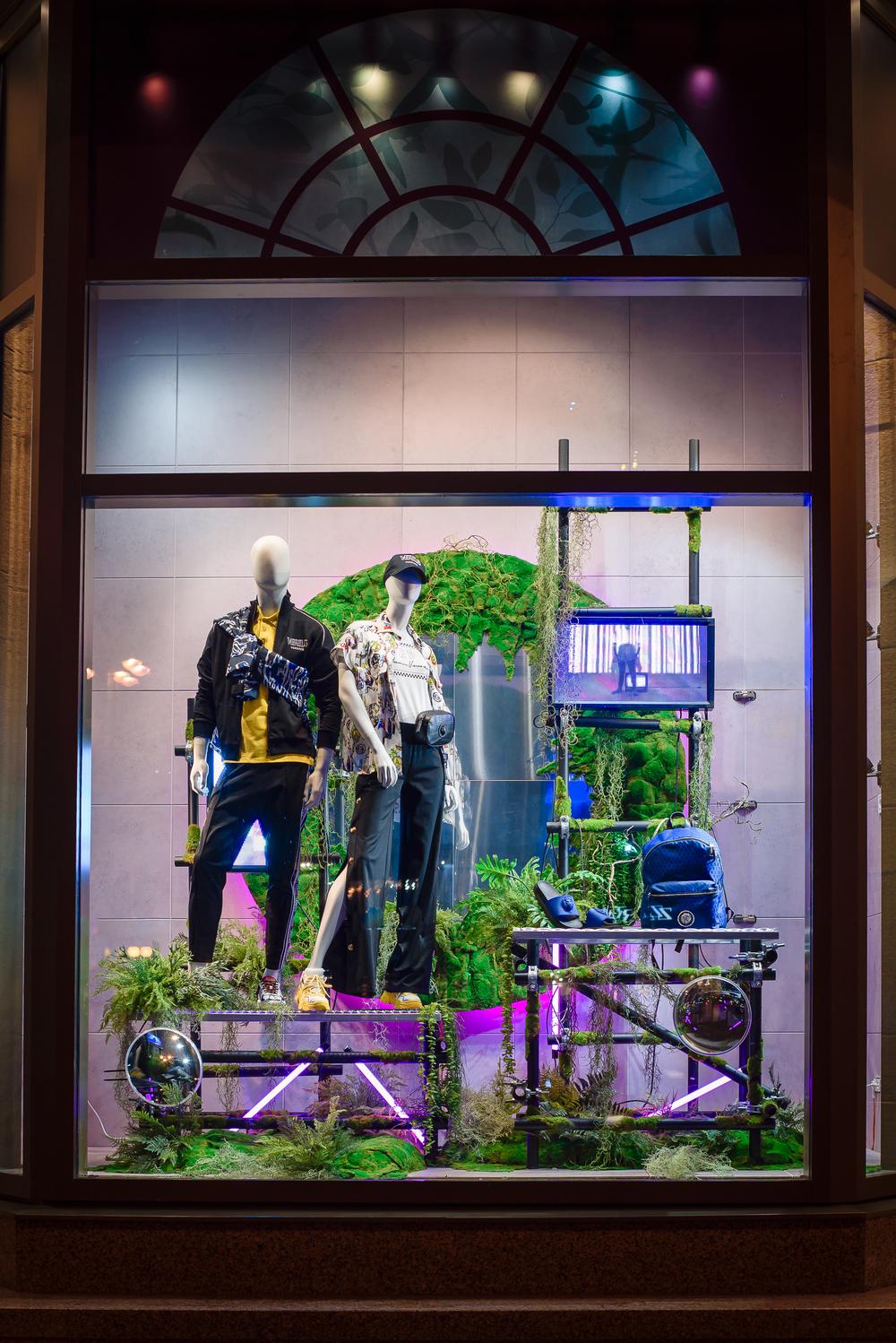 У кожній з вітрин представлена композиція, що включає один або кілька символів: рослини, каміння, риштування й елементи digital. Креативна команда універмагу не випадково вибрала саме таке поєднання різних факторів. Рослини, зелень – це відсилання до весни та нового сезону, що розпочнеться незабаром, і в якому ЦУМ постане перед відвідувачами в новому, переродженному вигляді.