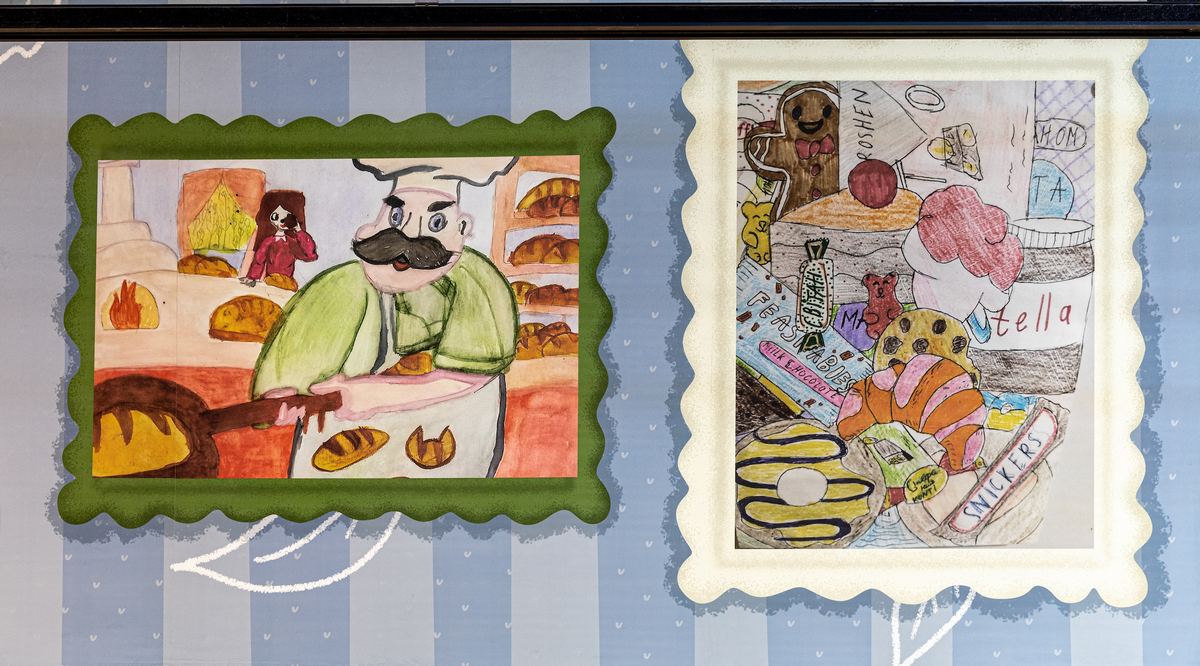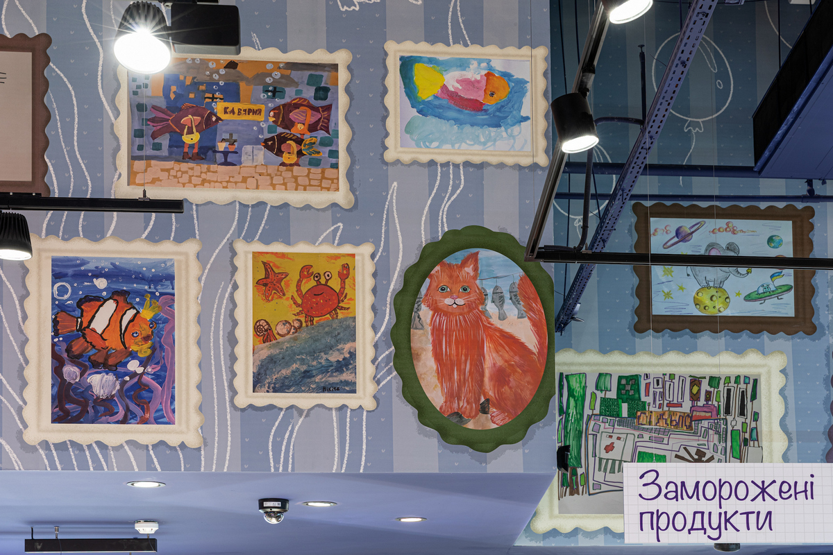 Для оформлення супермаркету використали реальні дитячі малюнки, які юні художники надсилали на конкурс і тепер можуть знайти їх на стінах нового магазину.