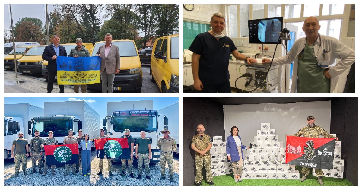 Близько 12 млн грн благодійної допомоги було також надано на повне відновлення будинку у Львові, який постраждав від ракетних обстрілів. Військовим підрозділам придбано та передано близько сотні автівок та півтисячі сучасних БПЛА Mavic3 Pro.