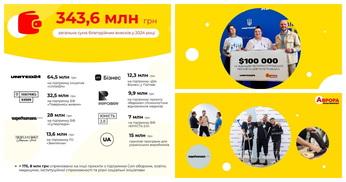 До Дня незламності, з 19 до 25 лютого минулого року, в усіх магазинах мережі тривала акція «Незламний донат». За тиждень цієї акції Аврорі вдалося зібрати 6,7 млн грн. Ці кошти направлять на відновлення військових медиків.