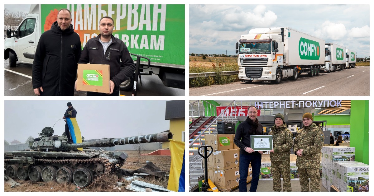 Компанія співпрацює з БФ «Повернись живим», БФ Сергія Притули, платформою United24 та іншими. Загалом команда перерахувала на великі збори 86 млн грн. Крім того, Comfy передає техніку за запитами від військових та волонтерів. Компанія вже передала техніки на 64 млн грн.