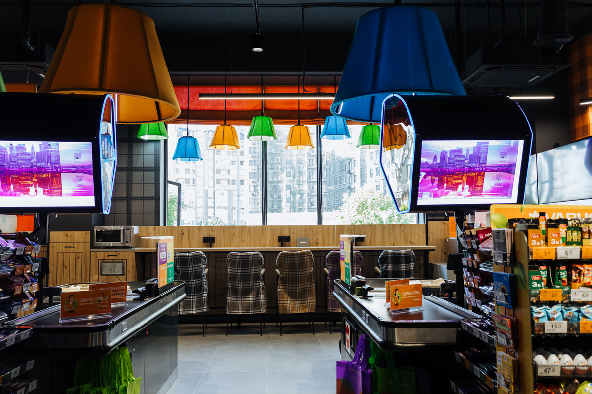 Для зручності покупців, окрім класичних кас, працюють ще й каси самообслуговування, а з сучасним сервісом Scan&Go покупки стають ще швидшими та комфортнішими.