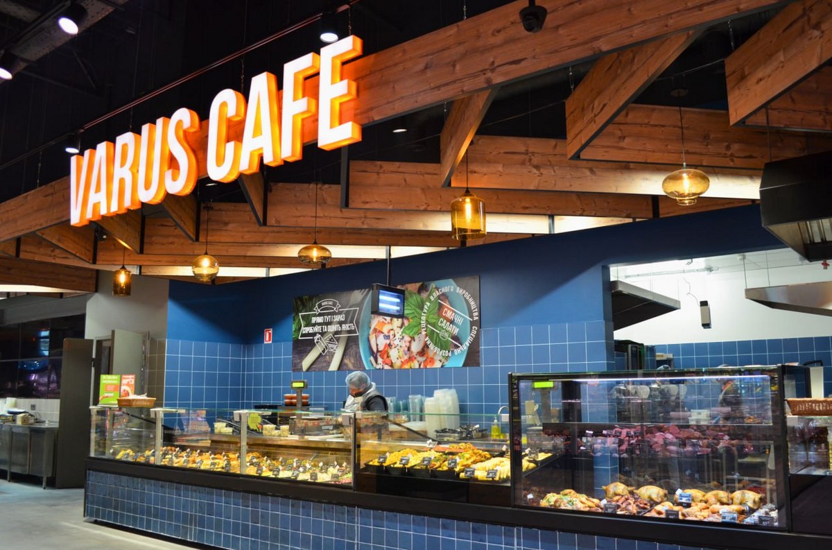 Асортимент магазину охоплює ключові FMCG-категорії: м’ясо, риба та морепродукти, молочна продукція, сири, фрукти й овочі, а також сегмент готових страв, випічки, WOK, фрешів і кондитерських виробів. Окремим функціональним блоком у торговому залі виступає Varus Cafe — зона власного виробництва з гарячими стравами та піцою з печі, що відповідає стратегії мережі з розвитку форматів швидкого споживання.