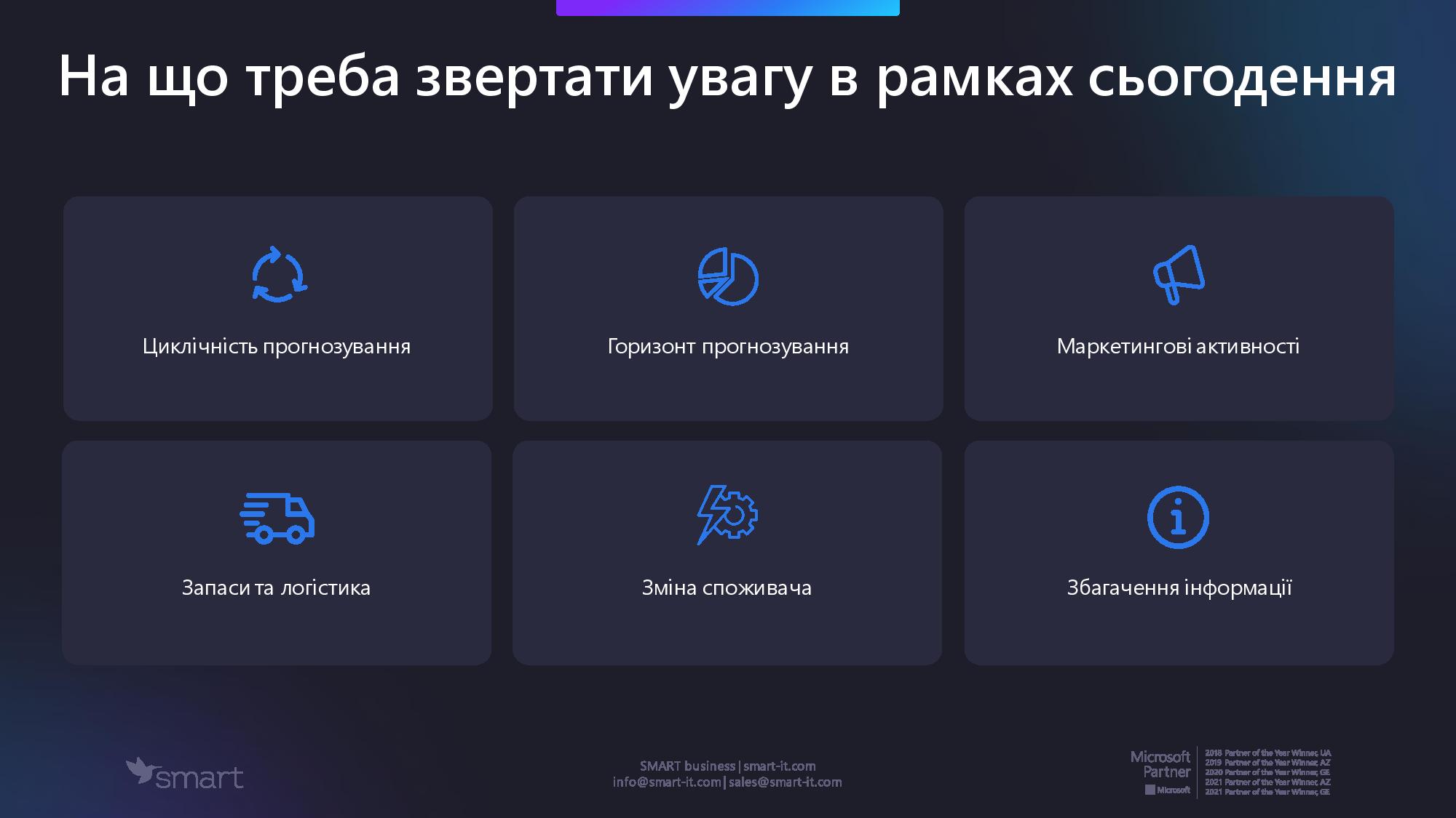 В рамках сьогодення варто змінити циклічність прогнозування, тому що інколи це може підвищити його якість. Горизонт прогнозування має змінитися з довгострокового на короткостроковий. Варто більше використовувати маркетингові активності, передивлятись запаси та логістику й розуміти, що споживач змінюється.