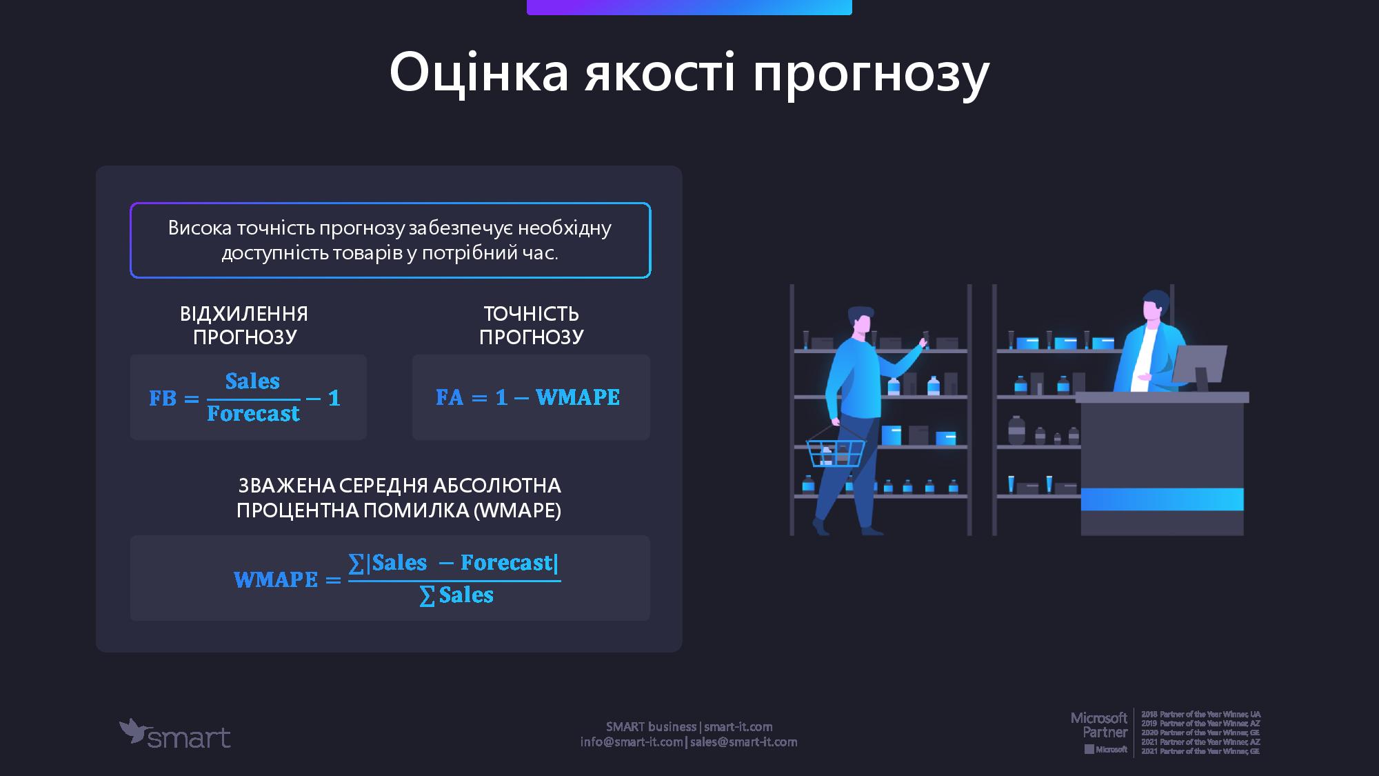 Артем Степанов: Висока точність прогнозу забезпечує необхідну доступність товарів у потрібний час. Її рахувати можна різними способами. В SMART Business ми рахуємо зважену середню помилку, відхилення прогнозу і точність прогнозу.