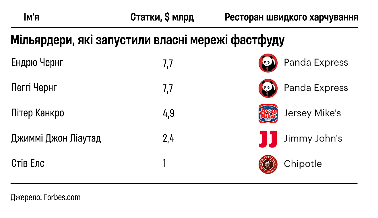 Попри те, що Хуанг, Безос та інші мільярдери досягли успіху в зовсім інших індустріях, дехто з їхніх колег залишився у сфері фаст-фуду й саме там побудував свої статки.