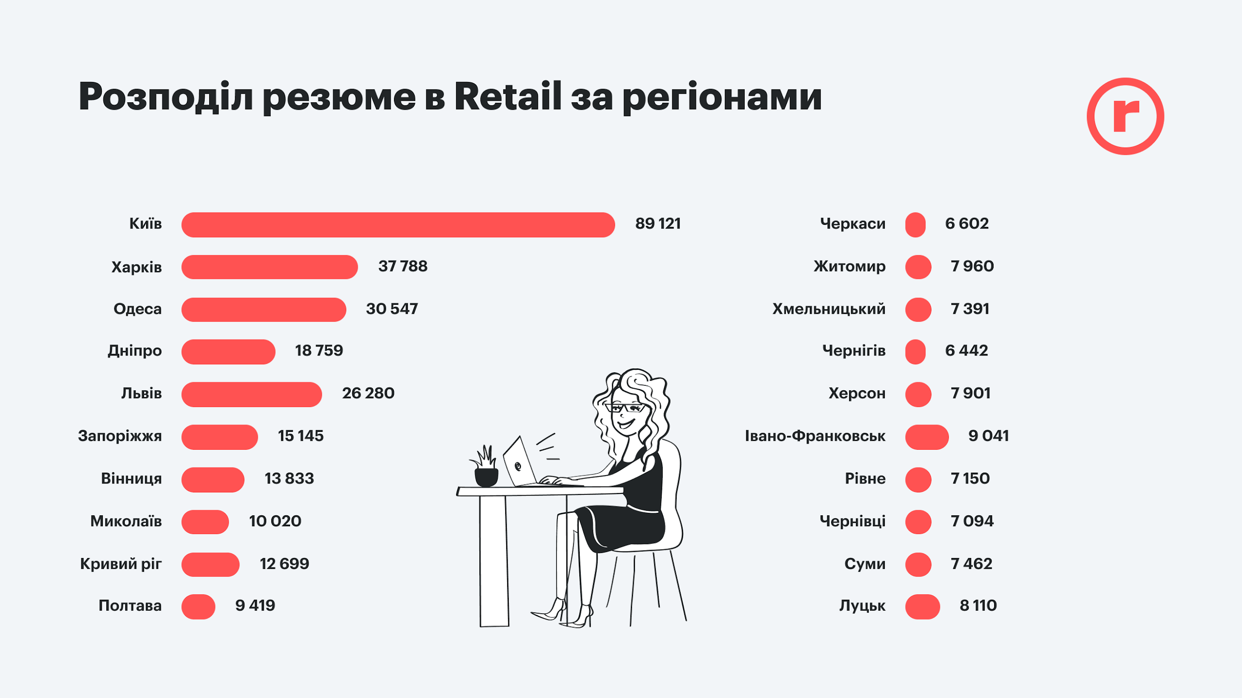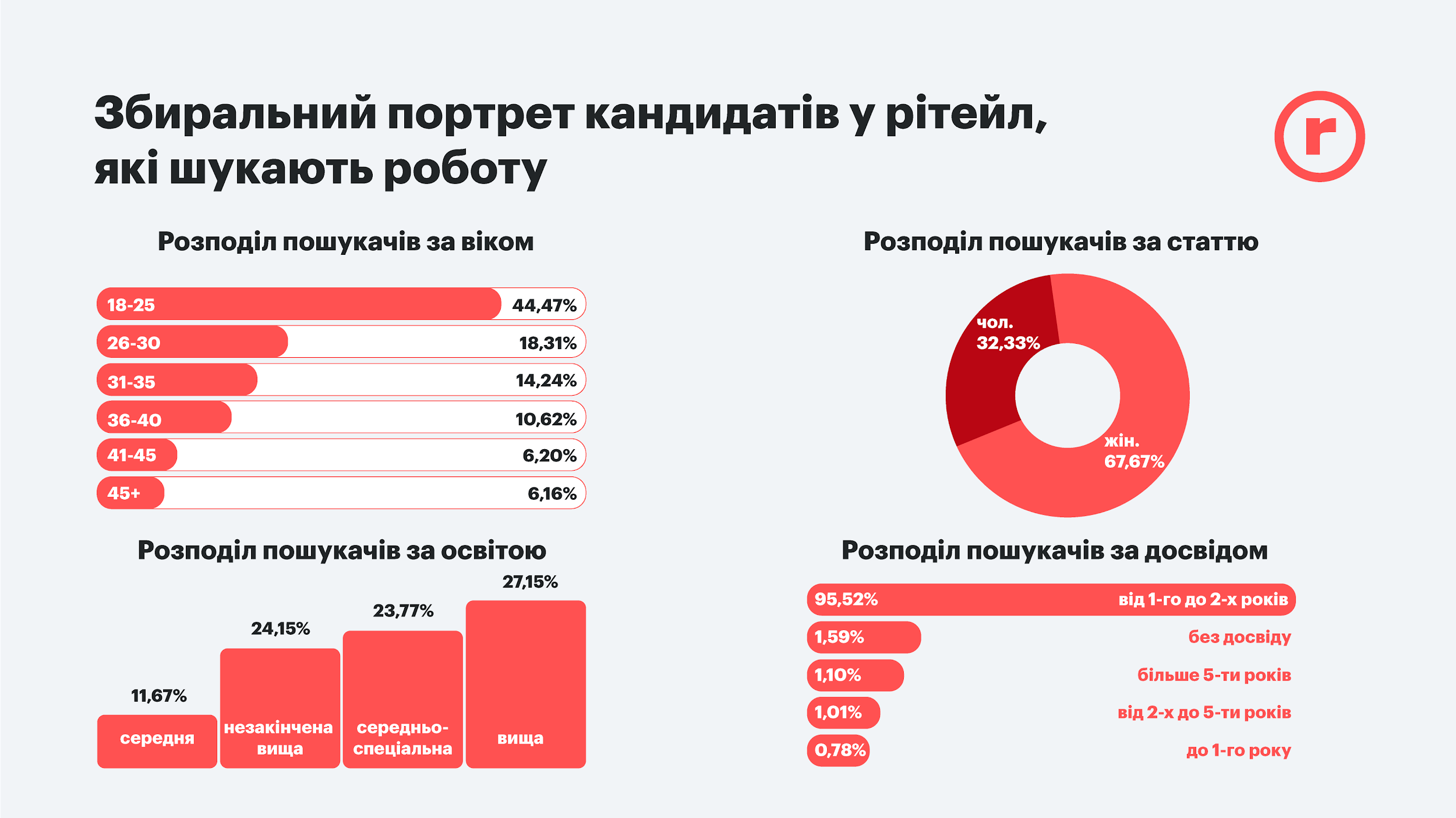 Портрет пошукача роботи у сфері рітейлу у 2021 році виглядає наступним чином: