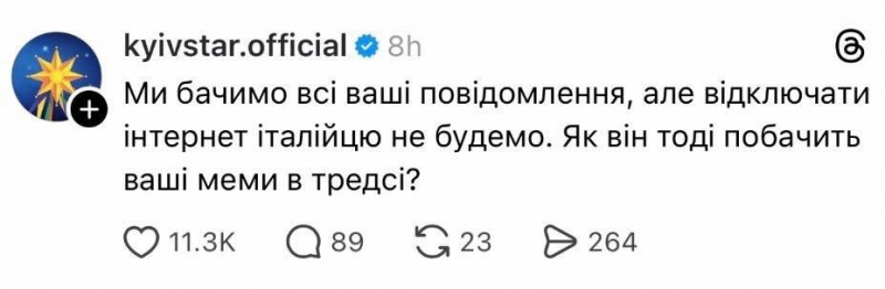 Фраза з допису - «Я ляжу, але воно не заїде в Україну» - швидко розійшлася соцмережами, перетворившись на мем і маркер громадянської позиції.