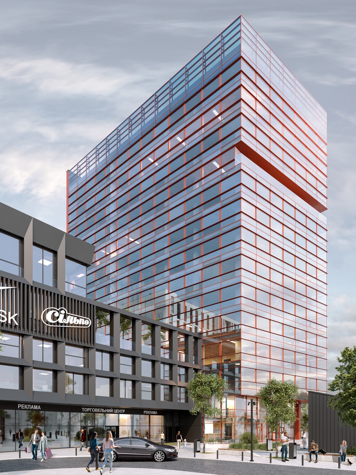 - Паркінг на 229 місць, включаючи зони для зарядки електромобілів та автомийку.