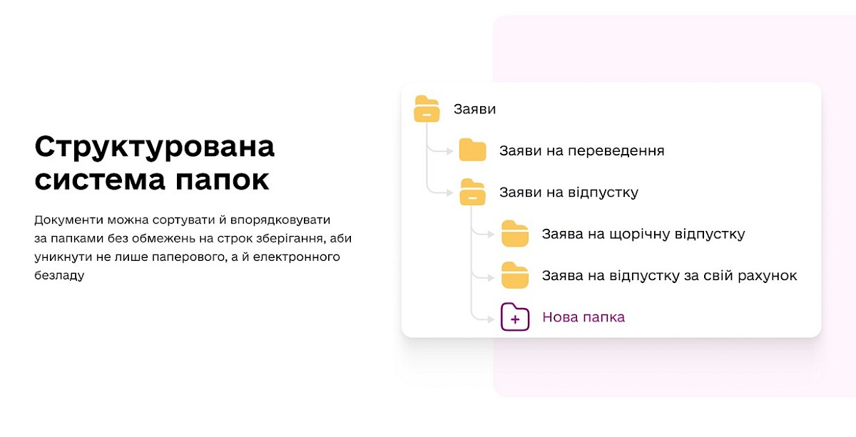 - всі документи зберігаються централізовано і доступні в будь-який момент.