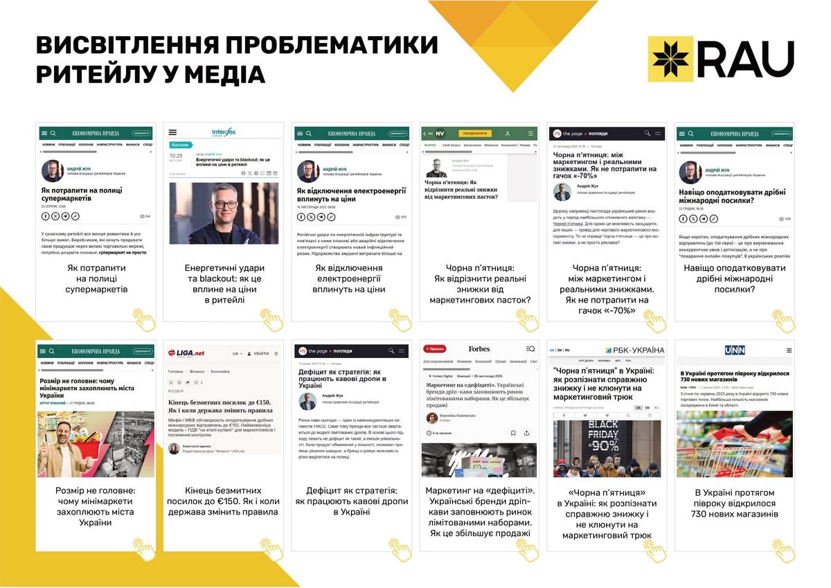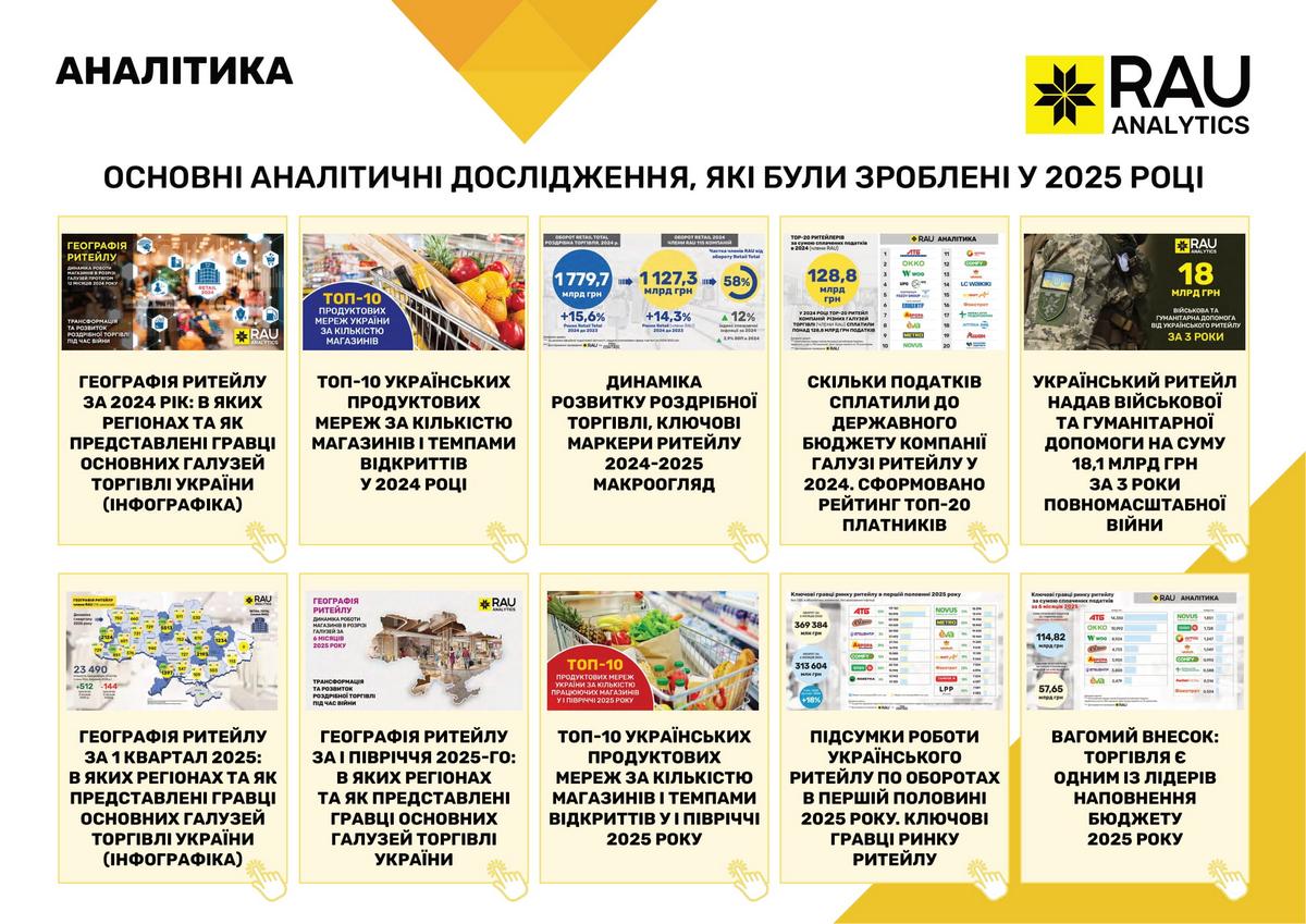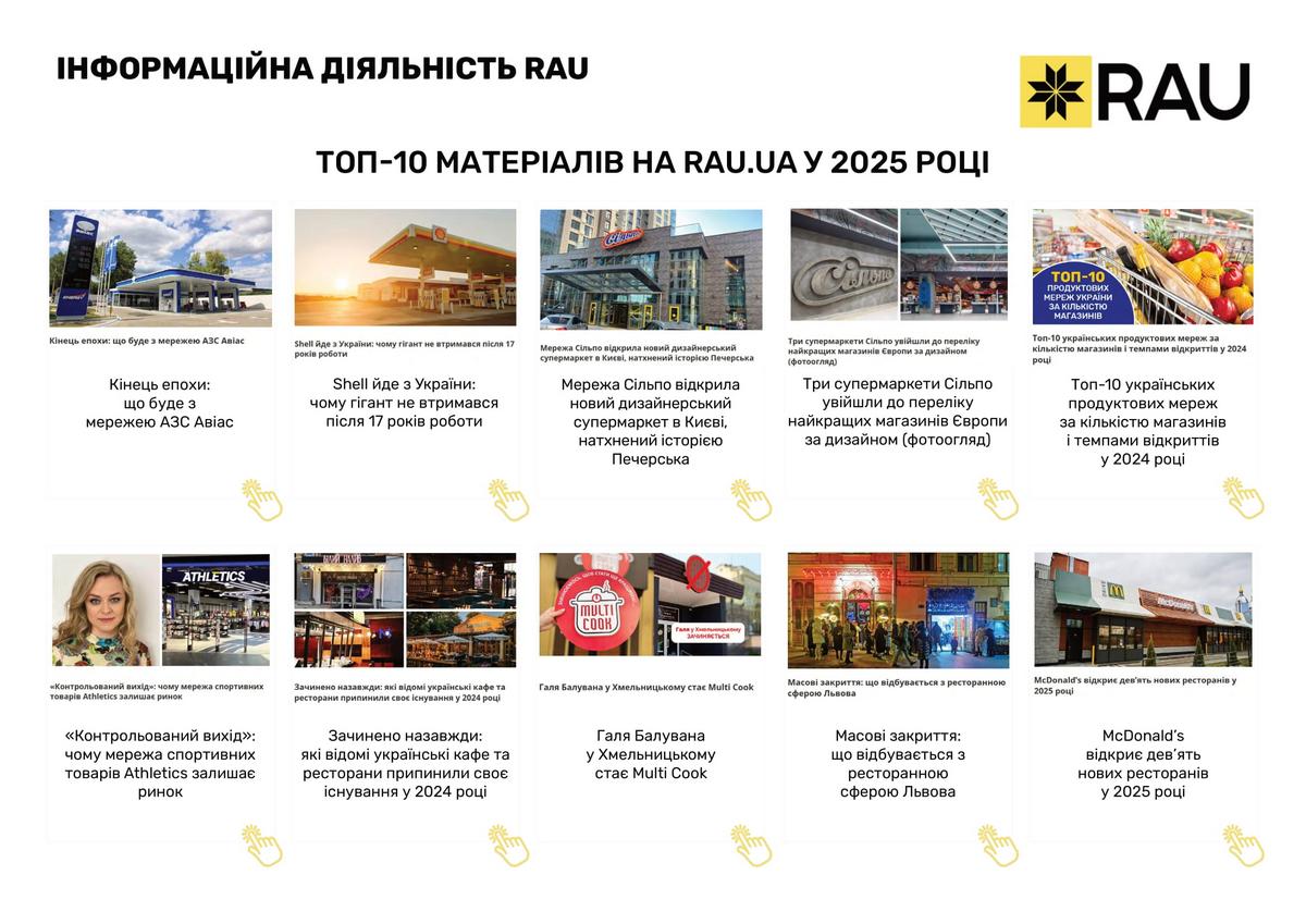 Підсумки роботи Асоціації ритейлерів України у 2025 році в цифрах та графіках: які члени та партнери приєднались до RAU, скільки статей було опубліковано, які аналітичні дослідження вдалося реалізувати, які зустрічі з владою організувала GR-команда, що було зроблено та які результати отримано.