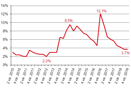 По данным компании JLL, в IV квартале 2018 года впервые за последние два года не произошло снижения доли свободных площадей на рынке торговых центров Киева. В то же время, за год показатель сократился на 1,9 п.п. и составил 3,7%.