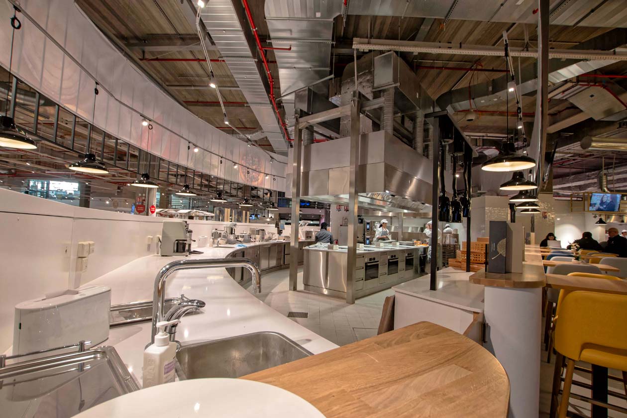 Чтобы расширить ассортиментное предложение, ресторанная кухня Les comptoirs du gout (“Прилавки вкуса”) площадью 1000 кв. м вмещает салат-бар и предлагает неаполитанскую пиццу, приготовленную на дровах, свежие бутерброды и азиатские блюда, которые можно отведать на месте, так и забрать с собой.