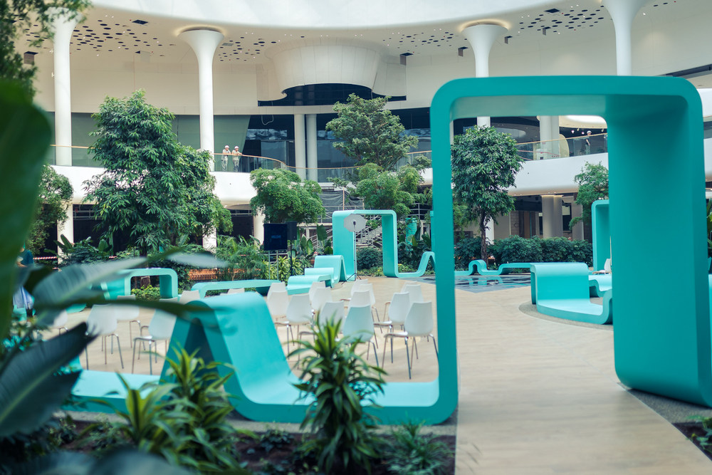 Следует отметить социальную составляющую проекта: это 5000 рабочих мест, системы энергоэффективности и экологические мероприятия. На территории ТРЦ высажено более 2000 живых деревьев, организованы зоны отдыха для посетителей. В рамках экологических мероприятий также внедрены системы энергоэффективности с использованием современных LED-технологий, предусмотрено комплексное решение по утилизации твердых отходов, ламп, элементов питания.