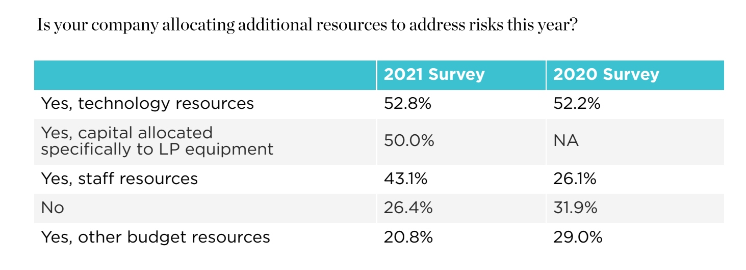 По мере появления дополнительных угроз ритейлеры вкладывают больше ресурсов для защиты своих клиентов, сотрудников и операций. Половина (53%) компаний выделяют дополнительные технологические ресурсы, а еще 50% заявили, что они выделяют дополнительные средства специально для оборудования по сокращению потерь.