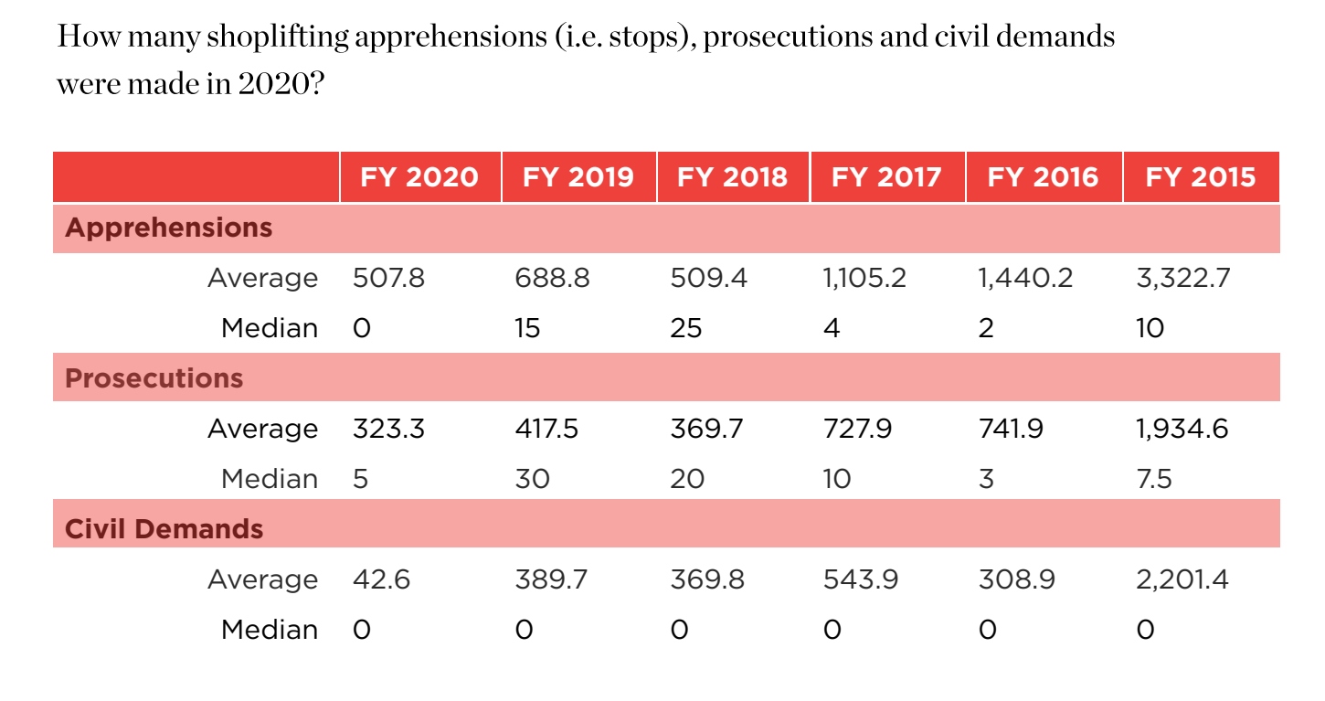 Количество задержаний и судебных преследований по отношению к ворам и грабителям упало до нового минимума в 2020 году. В 2020 году количество задержаний снизилось до 507,8 в среднем с 688,8 в 2019 году. Это также значительное снижение по сравнению с предыдущими пятью годами (исключая 2018 год, когда была примерно такая же картина).