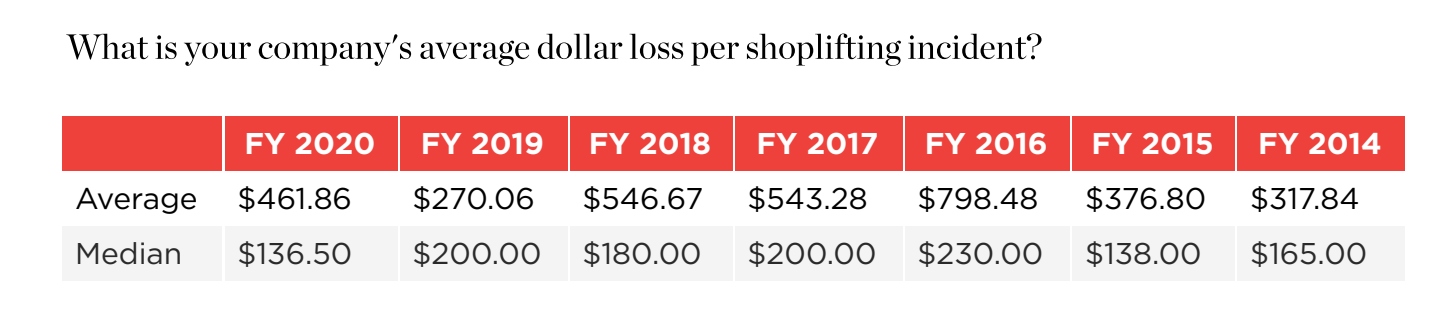 Тем не менее, эти кражи в магазинах приносят больше денег преступнику. Средний убыток от кражи вырос по сравнению с прошлым годом, но все еще ниже среднего показателя за последние несколько лет. Медиана – среднее значение в списке всех респондентов опроса – самое низкое за последние семь лет.