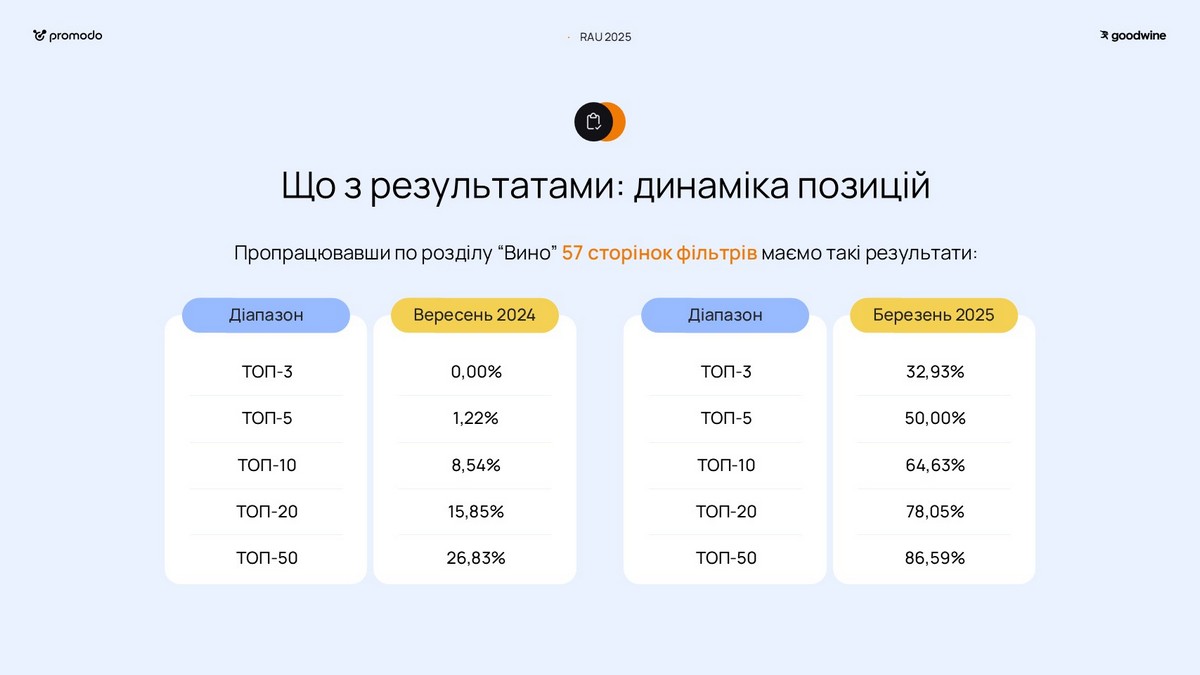В результате с сентября 2024 года по март 2025-го удалось с нуля до 33% нарастить количество запросов из топ-3. Таким образом, чуть больше чем за полгода это принесло 55 100 сеансов, которые конвертировались в 1,5 млн грн.
