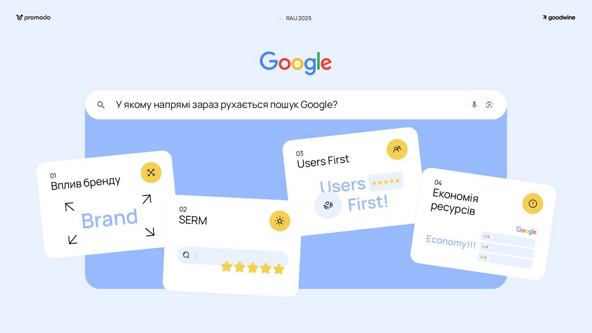 В области SEO-оптимизации специалисты рассматривают поисковый сервис Google как важный канал коммуникации с большим трафиком и возможностью получить высокий доход. Но, с другой стороны, сам Google становится конкурентом в органическом поиске, направляя потребителей на собственные сервисы и блоки. Можно выделить четыре сектора, в которых поисковый сервис сосредоточил свои усилия: бренд, репутация, интерес клиента и экономия ресурсов.