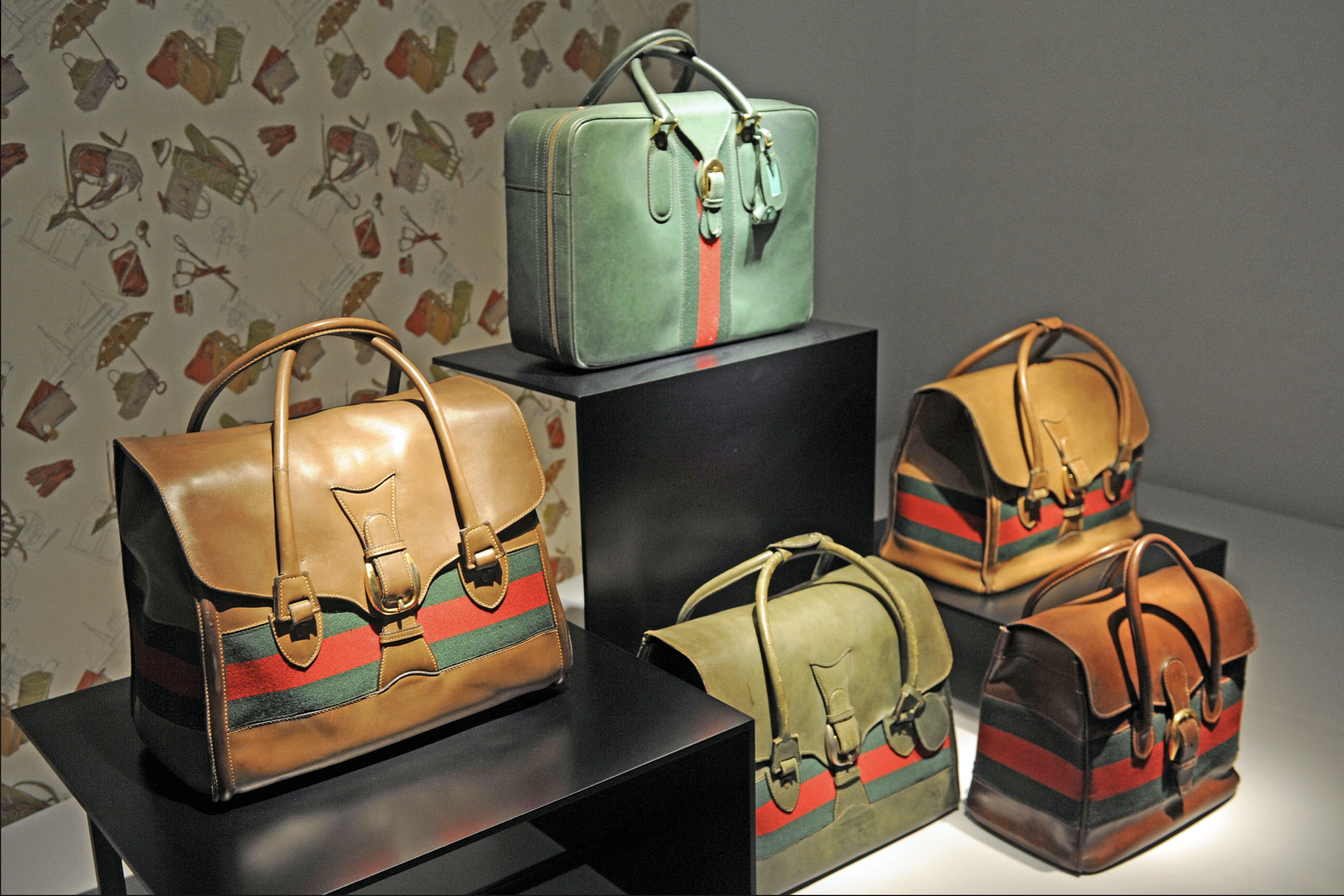 Альдо попросил дубильника покрасить несколько образцов свиной кожи в необычные цвета – в частности, синий и зеленый. Что из этого вышло? Шесть образцов кожи отвратительного цвета. Но Альдо продолжал экспериментировать. Тогда же сумки Gucci начали делать из пестрой кожи, покрытой «темнее основного фона рельефно очерченными пятнами». Цвет появился по причине ошибки красильщика и очень понравился Альдо. Возможно, решение о таком оттенке изделий приняли из-за бережливости. Но впоследствии он стал частью эстетики компании, еще и защищавшей от подделок из-за сложности точного воспроизведения.