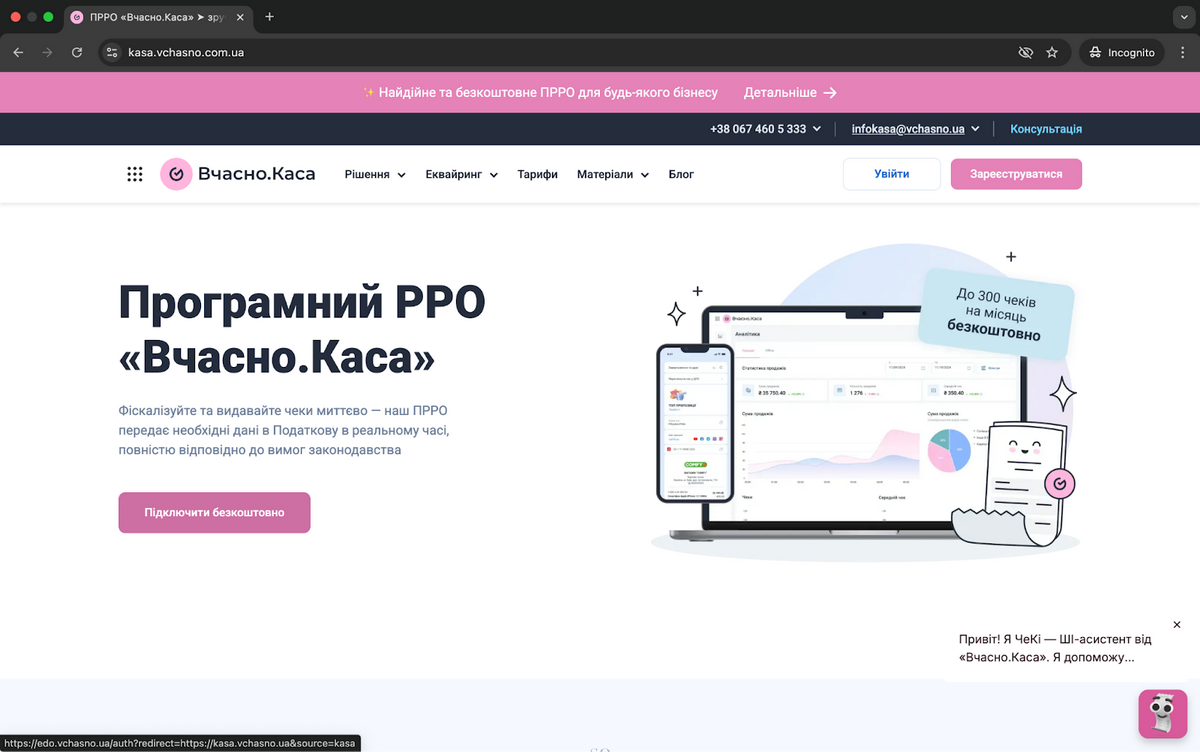 – Мы не отстаем от трендов и запустили AI-ассистента “Вчасно.Каса” – его зовут ЧеКи. Он уже сейчас может отвечать на многие вопросы о продукте, хотя еще учится. В будущем он станет полноценным помощником для пользователей. Кроме того, мы активно работаем над новыми интеграциями с учетными системами, tap-to-phone решениями и сервисами интернет-эквайринга.