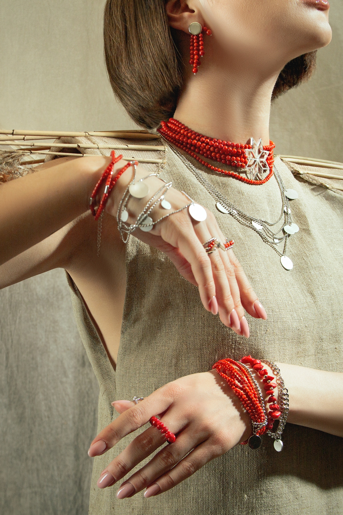 Коллекция KORALI выполнена из материалов, которые издавна использовали украинские ювелиры: барочный жемчуг, серебро и, конечно же, красные кораллы. Эти украшения очень эффектны и всегда актуальны. Переплетение жемчужных нитей, связки коралловых колье различной длины с подвесами и без них — можно носить как отдельно, так и вместе, создавая модный эффект многослойности. Именно так в старину украинки носили свои “ожерелья”. KORALI — часть нашего культурного кода, нашей ДНК, в ней представлены национальные мотивы, которые всегда найдут отклик в украинской душе.