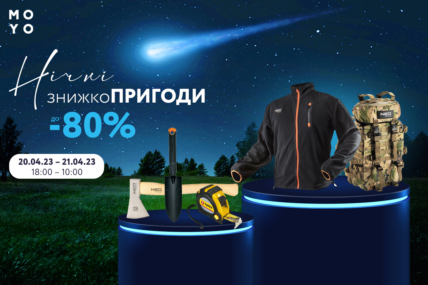 Ночные “скидкопроисшествия” устроили в MOYO. “Успейте заценить яркие скидки, как метеориты. Только сегодня ночью у вас будет возможность не только наблюдать, но и хватать яркие скидки на нужные товары”, – начали обращаться к себе в интернет-магазин за покупками.