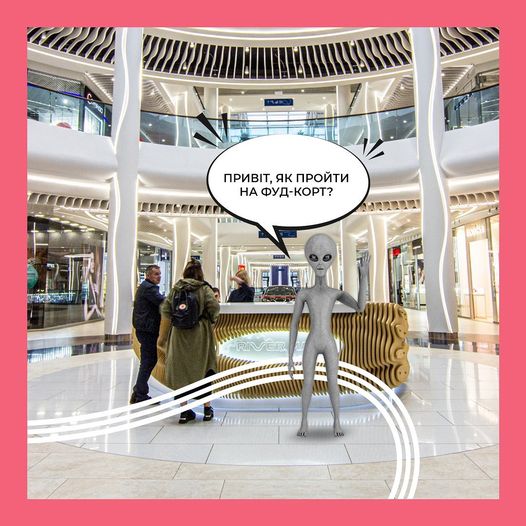 “Вот почему инопланетные существа высадились именно на Левом берегу, потому что очень хотели в Ривер”, – отметили в ТРЦ River Mall и представили фотофакт инопланетного посещения торгово-развлекательного центра.
