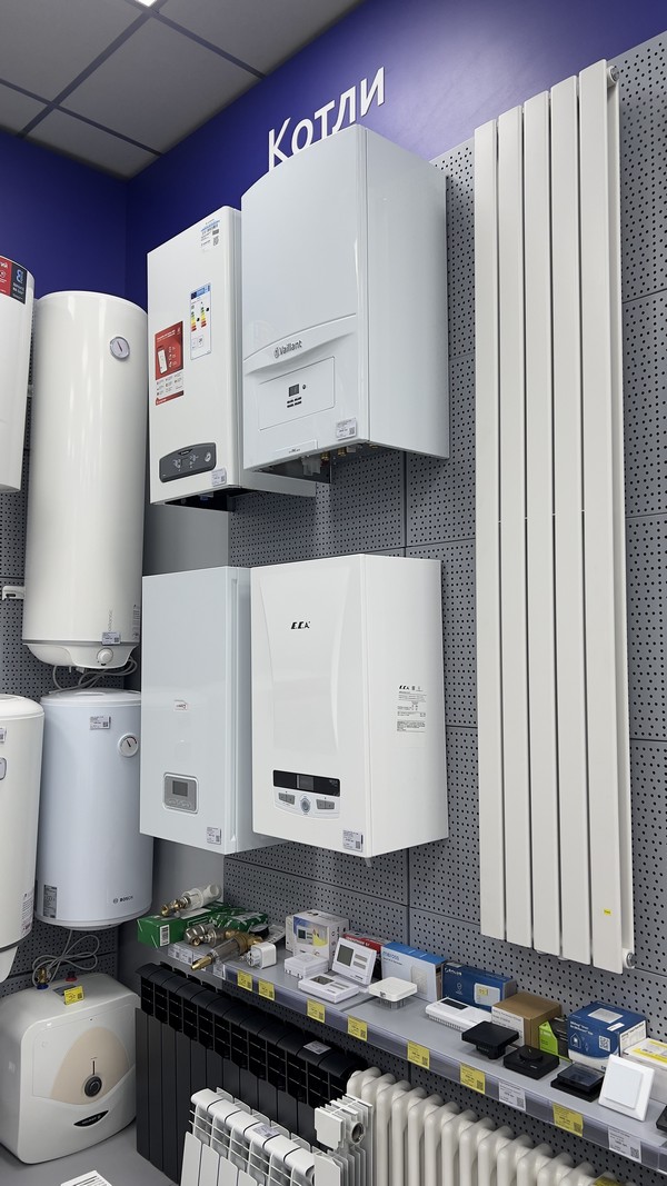 В шоу-руме представлены все основные группы товаров: вентиляция, водонагреватели, кондиционеры, котлы, полотенцесушители и обогреватели.