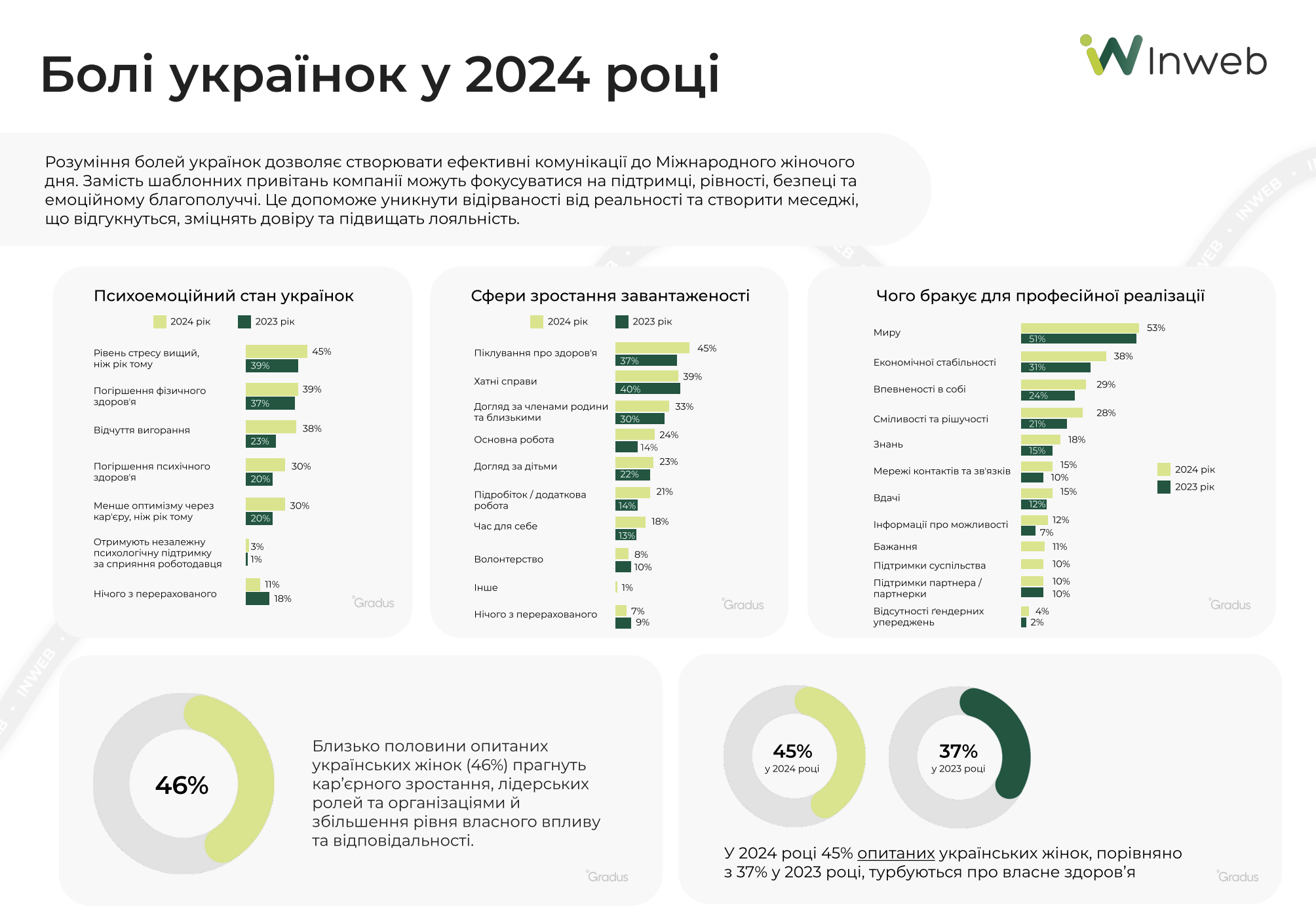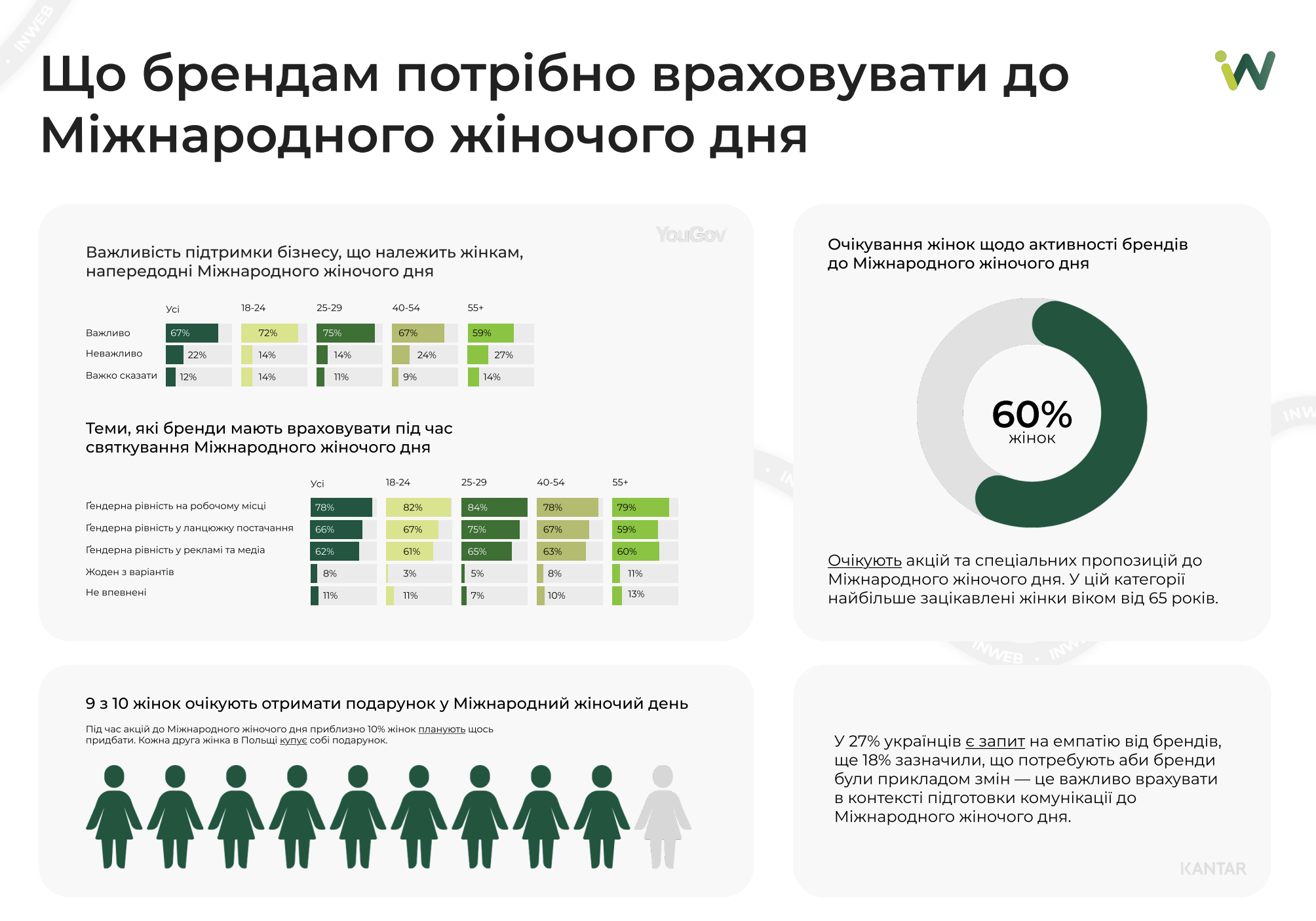 У 27% украинцев есть запрос на эмпатию от брендов, еще 18% отметили, что нуждаются в том, чтобы бренды были примером изменений – это важно учесть в контексте подготовки коммуникации к Международному женскому дню.
