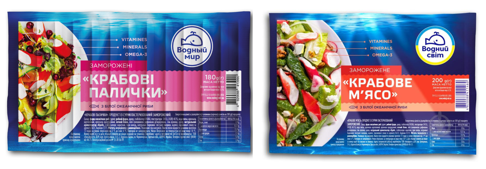 Крабовые палочки «Водний світ». Единственный в Украине производитель крабовых палочек провел патриотический ребрендинг и оставил в прошлом старое русскоязычное название. Компанию основали более 20 лет назад в Одессе. В начале своего старта она была региональной и бренд ориентировался на жителей Одессы и области, которые тогда были в основном русскоговорящими. После начала войны «Водный мир» запустил новую рекламную кампанию бренда под названием «Мой мир, озаренный светом мирных времен» и заявил о новой миссии бренда: не только снабжать потребителей широким ассортиментом морепродуктов, но и помогать ВСУ.