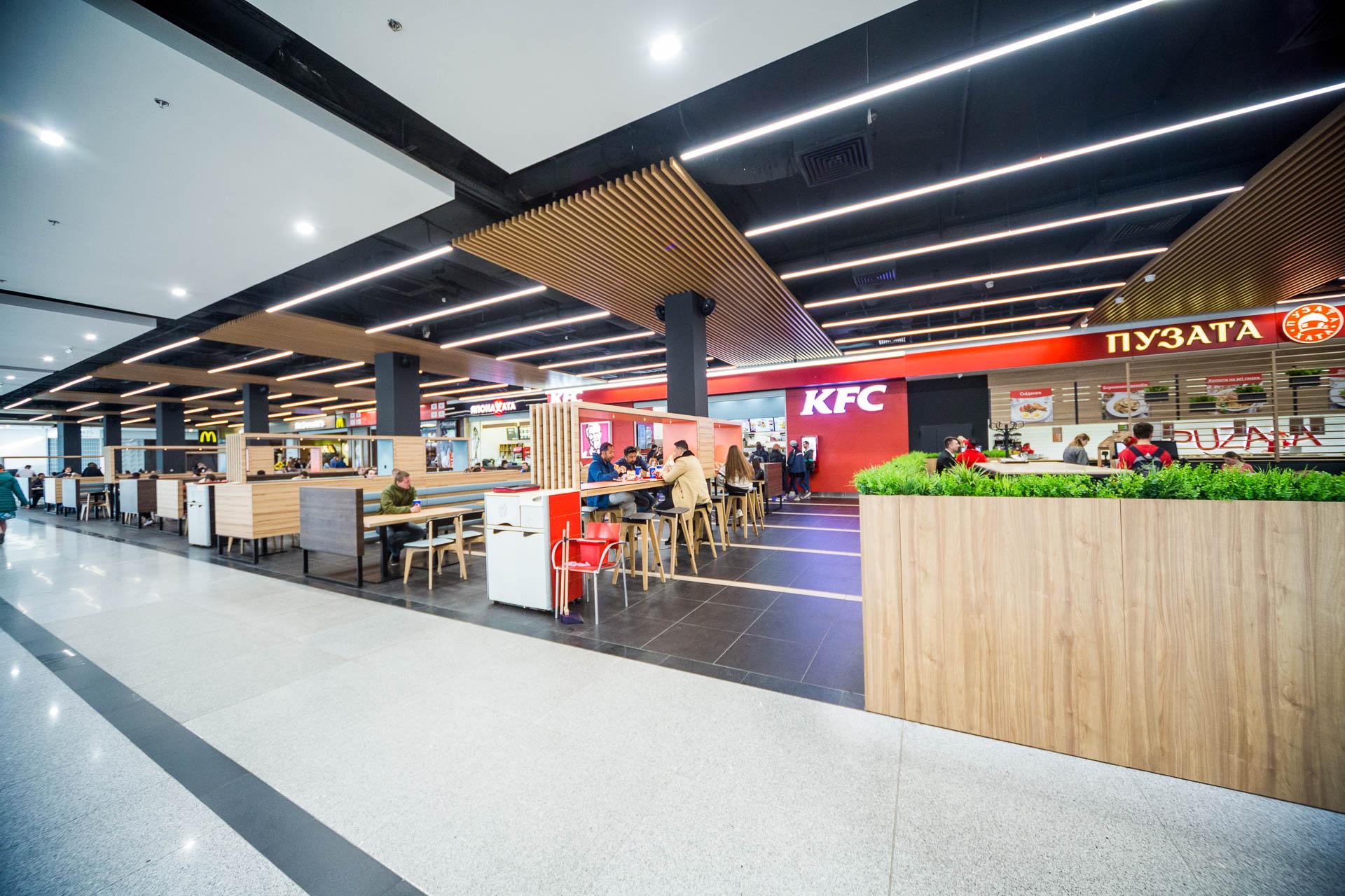 На фуд-корте комплекса работают такие арендаторы как McDonal’s, KFC, Пузата Хата, Salateira, Япона Хата, Хинкальня, Varenik Bar и вскоре появятся несколько новых.