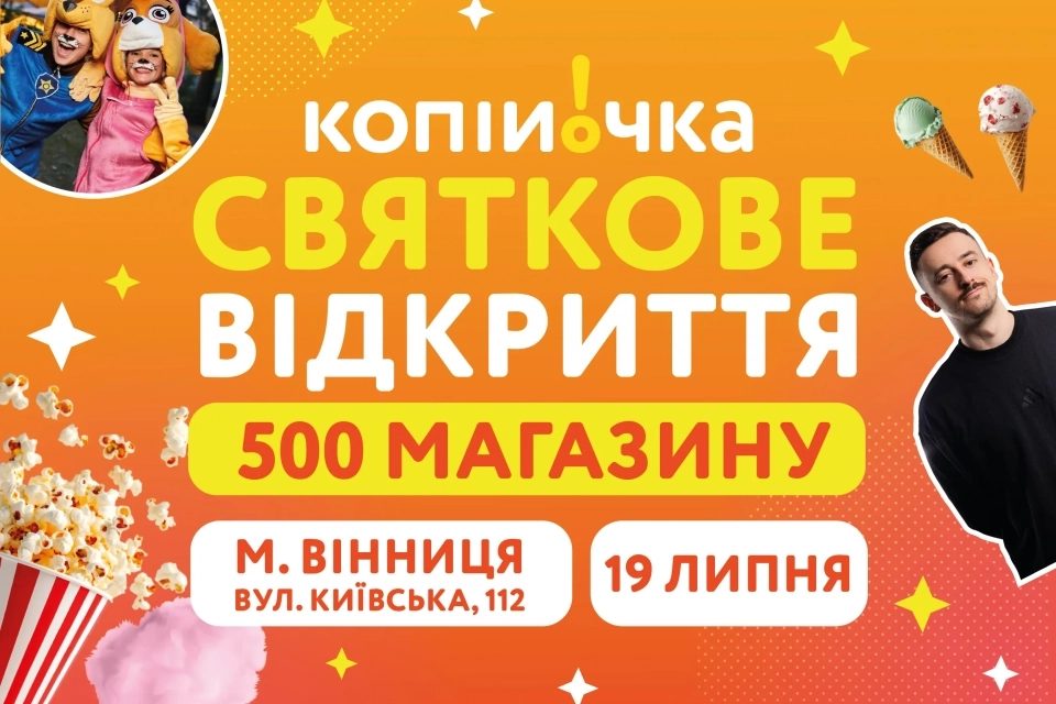 Одна из крупнейших в Украине франчайзинговых сетей магазинов товаров для дома и повседневного спроса Копійочка 19 июля запустила свое 500-е торговое пространство. Юбилейная торговая точка находится в Виннице по адресу ул. Киевская, 112. В магазинах Копійочка представлены бытовая химия, косметика, товары для дома, одежда, обувь, продукты питания, детские товары и многое другое.